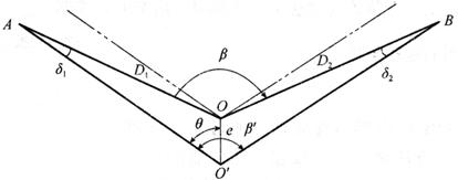 释义 | 角度测量的误差来源 在角度测量过程中,造成测角误差的因素有三种:仪器误差、观测误差、外界条件的影响。 1.仪器误差 仪器虽经过检验及校正,但总会有残余的误差存在。仪器误差的影响,一般都是系统性的,可以在工作中通过一定的方法予以消除或减小。 仪器误差中的视线不垂直横轴、横轴不垂直竖轴、照准部偏心及竖盘的指标差等对测角造成的误差均可通过取盘左、盘右读数的平均值或取盘左、盘右观测角值的平均值的方法来加以抵消或大大减弱。 2.观测误差 观测误差主要有:对中误差(测站偏心)、目标偏心、照准误差及读数误差。 (1)对中误差 对中误差的大小,取决于仪器对中装置的状况及操作的仔细程度,它对测角精度的影响如图3-24所示。设O为地面标志点,O′为仪器中心,OO′的长度为对中时的偏心距e,则实际测得的水平角为β′而不是应测的β,两者差值为: △β=β-β′=δ1+δ2 图3-24 对中误差对测角精度的影响 由于δ1和δ2很小,所以存在 式中 θ——观测方向与偏心方向夹角; D1——测站点到A的距离; D2——测站点到B的距离。 可得: 当β′=180°,θ=90°时,取D1=D2=D,则△β有最大值 当D=100m,e=3mm时,△β=12.4″;当D=50m,e=3mm时,△β=25″。 可见,边长越短,偏心距e越大,则对测角的影响也越大。所以在测水平角时,边长越短,对中的精度要求越高,对中时越需要仔细。 (2)目标偏心 在测角时,通常都要在地面点上设置观测标志,如花杆、垂球等。造成目标偏心的原因是标志与地面点对得不准,或者标志没有铅垂,而照准的标志上部与地面标志点偏移。 与测站偏心类似,偏心距越大,边长越短,则目标偏心对测角的影响越大。所以在观测角度时,标杆底部要对准地面点并且要竖直,在瞄准时应尽可能的瞄准目标的底部。短边测角时,尽可能用垂球作为观测标志。 (3)照准误差 照准误差大小与人眼的分辨能力、望远镜的放大率有关。人眼的分辨能力一般为60″,设望远镜的放大率为ν,则照准时的分辨能力为60″/ν。一般DJ6型光学经纬仪望远镜的放大倍率ν为25~30倍,因此,瞄准误差mν,一般为2.0″~2.4″。另外,瞄准误差与目标的大小、形状、颜色和大气的透明度等也有关。因此,在观测中应尽量消除视差,选择适宜的照准标志,熟练操作仪器,掌握瞄准方法,并仔细瞄准以减小误差。对于粗的目标宜用双丝照准,细的目标则用单丝照准。 (4)读数误差 对于分微尺读法,主要是估读最小分划的误差;对于对径符合读法,主要是对径符合的误差所带来的影响,所以在读数时宜特别注意。一般读数时应读到最小刻度的1/10。 3.外界条件的影响 对测量成果产生影响的外界条件很多,如天气的变化、植被的不同、地面土质松紧的差异、地形的起伏,以及周围建筑物的状况等,都会影响测角的精度。有风会使仪器不稳,地面土松软可使仪器下沉,强烈阳光照射会使水准管变形,视线靠近反光物体则有折光影响等。这些情况在测角时应尽量予以避免。 |