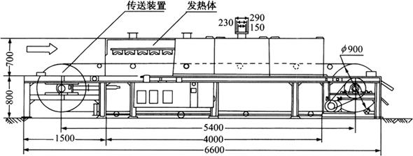 远红外烘烤干燥设备根据制品品种来选择辐射器的型式和数量。 (五)远红外烘烤箱 烘烤箱的外形如图3-6-9所示。