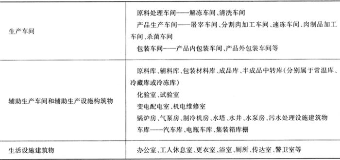 释义 | 设计依据 肉类加工厂内的建筑物一般包括:生产车间、辅助生产车间和辅助生产设施构筑物及生活设施建筑物三大部分,各部分包括的主要建筑物和构筑物见表4-3-1。 表4-3-1 肉类加工厂内主要建筑物和构筑物 生产规模较小的肉类加工厂内各个建筑物一般设置在一幢厂房内。生产规模较大的肉类加工厂或者有特殊生产要求时,厂内的建筑物分别独立设置。无论何种情况,肉类加工厂的各种建筑物、构筑物的设计都必须首先满足生产工艺的要求,同时要考虑建厂的投资规模,考虑建厂地方的地质、气象情况及工厂周围的环境条件。通过综合比较,最终确定最佳的建筑设计方案,并且进一步设计、绘制出全套建筑施工图。为了保证肉类加工厂建成后能安全、卫生、高效率地进行生产,对厂内各种建筑物、构筑物进行设计时还必须遵循国家、部门对工业企业提出的卫生、消防、防火、防震等一系列有关的设计规范、设计标准、法规的规定。为此,在进行肉类加工厂建筑设计工作时,应首先搜集并掌握以下一些资料。 |