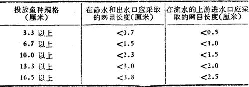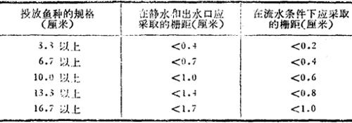 释义 | 设计拦鱼设备的原则 水库由于泄洪、灌溉、发电等需要经常排水,因此防止鱼类外逃,是水库养鱼的关键问题。建立拦鱼设备,是防止鱼类外逃首要技术措施。设计拦鱼设备应以水库的水文、鱼类特性和生态环境为主要依据。切实做到“因鱼设拦”和“因水设拦”。 (1)选择流速适宜的栏截处鱼类的游速是拦网设计的主要依据。如设网处流速过大超过了鱼类的游动能力,鱼类就会失去控制而被贴在网上或栅上,导致网破或栅毁而逃逸。如在水流速度过低设置拦鱼设备,势必增大拦鱼设备规模,浪费材料和资金,也影响诸如航运等工作进行。 鱼类在流水中克服水流速度的能力称为克流能力,据河北省海河勘察设计院的测定,各种鱼类的克流能力如表2-128。鱼类在极限游速中只能维持很短时间,通常1-20秒。如用最大游速作为拦网的设计依据,是不够安全的。较为可靠的往往用鱼适应流速作为拦鱼设备的依据。 表2-128 鱼类克服流速能力(米/秒) 如青山水库观察,13.3厘米以上鲢、鳙鱼种,在0.5米/秒流速下,碰及拦网后能安全返回。杨梅岭电栅拦鱼试验,流速在0.75米/秒以下时,拦鱼效果良好,超过此值则逃鱼增多。 (2)选择合适的拦网网目和拦栅栅距 合理的拦网网目和栏栅栅距应以库内最小被栏鱼类的身周长和头宽为依据。在家鱼中,同一规格的不同鱼种,其身周长的大小顺序为鳙>草>鲢>青;头宽的大小顺序为草>鳙>青>鲢。因此,设计的拦网网目和拦栅栅距可以以拦阻鲢鱼进行测算。根据中国科学院水生生物研究所测算,拦住各种规格鱼种应采取的拦网网目和栏栅距的参数如表2-129,表2-130。 表2-129 拦截鲢鱼鱼种应采取的栏栅距 表2-130 拦截鲢鱼鱼种应采取的拦网网目 |