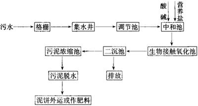 释义 | 设计注意事项 1.污水处理工艺流程的选定 应根据所处理废水的水量、水质,以及所在地的气候条件、经济文化水平等因素加以综合考虑,还应达到当地环保主管部门或环境影响报告书所提出的要求,确定原则为成熟、可靠、稳定、投资省、占地少、运行费用低、管理方便、操作简单。根据饮料废水的特性,宜采用生物接触氧化法或SBR法,处理装置的有机负荷应视废水进水浓度和出水浓度而定,如COD值>1000mg/L,则可选择生物两段处理,以提高去除率,达到排放标准。 生物接触氧化法和SBR法污水处理工艺流程见图6-9-1和图6-9-2。 图6-9-1 生物接触氧化法工艺流程简图 图6-9-2 SBR法工艺流程简图 2.选址及总体布置 废水处理站应尽量远离主要生产车间,并处于工厂夏季主导风向的下方,充分利用地形,使废水和污泥有自流的可能,避免重复提升,以节约动力消耗。平面布置应紧凑,选用方形构筑物时可利用公共墙壁,以节约造价且减少占地。流程中各处理装置宜选用两套并联使用,增加灵活性、可调性,以适应产品季节性变化所带来的水量变化。还应按流程顺序进行布置,避免管线迂回,减少管道费用和水头损失,同时应设事故超越管道,提高应变能力。 3.水质预调 饮料废水常呈间歇性排放,水量、水质变动幅度大。对于废水排放浓度较高的工序,以及酸碱废水排放点,宜设集水池,用泵定量将废水送至废水处理站。废水进入生化处理前,视废水中氮、磷比例及pH状况,及时投加营养盐或酸碱液,促使废水营养平衡和酸碱中和,同时应设调节池,以均衡水量水质。调节池容量以工厂生产班次、处理站运行时间及水量波动等因素确定,一般为6~8小时平均流量。 |