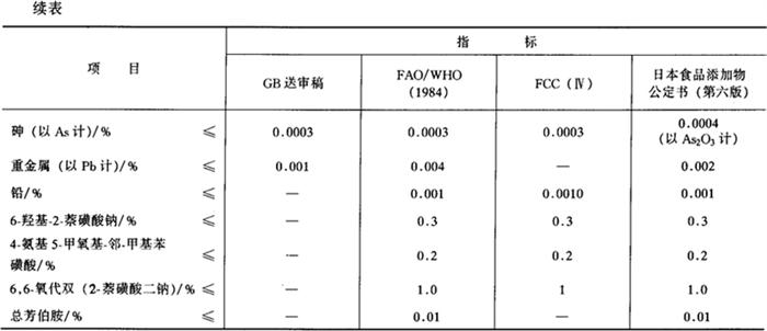 释义 | 诱惑红 别名 1-(4′-磺基-3′-甲基-6′-甲氧基-苯偶氮)-2-萘酚二磺酸二钠盐、C.I.食用红色17号、FD&C40号红色(美)、食用赤色40号(日) 编码 GB 08.012;INS 129;C.I.(1975)16035 化学结构 C18H14N2Na2O8S2 相对分子质量 496.43 性状 深红色均匀粉末,无臭。溶于水,呈微带黄色的红色溶液。可溶于甘油与丙二醇,微溶于乙醇,不溶于油脂。耐光、耐热性强,耐碱及耐氧化还原性差。 制法 2-甲基-4-氨基-5-甲氧基苯磺酸重氮化后与2-萘酚-6-磺酸钠偶合。 质量标准 *6-羟基-5-[(2-甲氧基-5-甲基-4-磺苯基)偶氮]-8-(2-甲氧基-5-甲基-4-磺苯氧基)-2-萘磺酸二钠。 鉴别方法 (1)0.1g本品溶于100mL水中,呈微带黄光的红色澄清溶液。 (2)本品微溶于乙醇,不溶于油脂,具有酸性染料的特性,能使动物纤维着色。 (3)100mL含有0.001g本品的0.02mol/L乙酸铵溶液,具有最大吸收的波长为499±2nm。 (4)取本品水溶液做纸上层析,其主色点的Rf值应与标准样品相同。 纸上层析条件: 展开剂 正丁醇∶无水乙醇∶氨水(1%)=6∶2∶3 温度 20~25℃ 试液浓度 0.1g/100mL 试液用量 0.002mL 展开剂前沿上升限度 150mm 毒理学依据 1.LD50 小鼠口服10g/kg(bw)(FAO/WHO,1985) 2.ADI 0~7mg/kg(bw)(FAO/WHO,1994) 使用 着色剂。 1.使用注意事项 参见苋菜红。 2.使用范围及使用量 我国《食品添加剂使用卫生标准》(GB2760-1996)规定:可用于糖果包衣,最大使用量0.085g/kg;用于冰淇淋、雪糕、苹果干、燕麦片(调香、调色载体)、可可玉米片(即食早餐谷类食品)为0.07g/kg;用于炸鸡调料为0.04g/kg;用于冰棍、糖果、糕点彩装、红绿丝、染色樱桃罐头、红肠肠衣、果汁饮料、果汁酒(色淀除外),最大用量0.05g/kg;用于果汁(味)型饮料、碳酸饮料,最大用量0.1g/kg;用于固体饮料,0.6g/kg;用于果冻粉、固体饮料,0.025g/kg(按稀释6倍计)。 |