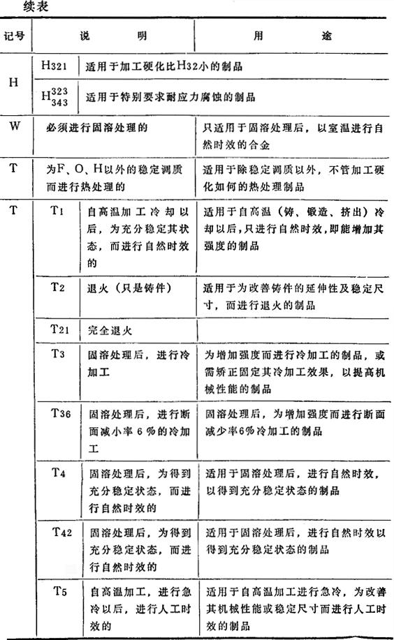 注:日本标准JIS规定的调质记号,有下列数种: