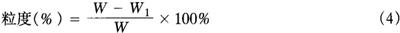 (四)检验方法 1.感官检验 (1)色泽、形状及杂质 肉眼直接观察。 (2)气味、滋味 嗅其气味及品尝滋味。 (3)溶解性 在豆浆晶中加入适量的80℃以上的水搅拌后观察其是否能迅速溶解为均匀乳状液。 2.理化检验 (1)水分测定 按GB5009.3检验。 (2)溶解度测定 按GB5009.46检验。 (3)蛋白质测定 按GB5009.15检验。 (4)脂肪测定 按GB5009.6检验。 (5)总糖测定 按GB5009.8检验。 (6)粒度测定 ①仪器 a)天平:感量 b)筛网:Φ2.5mm。 ②操作方法:称取试样50g,用规定的分样筛筛选2min,然后将筛上的残留物进行称重。 ③计算:粒度按式(4)计算: