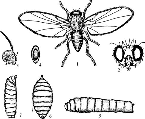 释义 | 豌豆潜叶蝇 【学名】 Phytomyza horticola Goureau。 【别名】 菜潜蝇、豌豆彩潜蝇。 【分布与为害】 在江苏、上海、浙江、福建、贵州等地均有分布。寄主有十字花科、菊科、豆科、唇形花科、茄科及大丽花等。幼虫潜入叶内取食,形成不规则白色线状的潜道,影响生长与观赏。 【形态特征】 成虫体长1.5~2毫米,翅展4.5毫米,体灰色。前翅无色,透明,后翅退化(图5-89)。卵为椭圆形,乳白色。幼虫蛆形,白色,体长约3毫米。蛹为卵圆形,短而粗,黄褐色。 图5-89 豌豆潜叶蝇 1.成虫 2.成虫头部正面 3.成虫触角 4.卵 5.幼虫 6.蛹背面观 7.蛹侧面观 【生活习性】 北方1年发生3~4代。以蛹越冬。在南方全年都能发生,发生代数更多。受精雌虫先将产卵管刺破叶缘,然后产卵1粒。1张叶片在不同部位产数粒。孵化后,幼虫潜食叶肉,形成弯曲线状潜道。幼虫老熟后,在潜道的先端作蛹室,化蛹其中。该虫在春夏之间发生最多,为害最烈。气温适宜时,1个月可完成1代。 【防治方法】 (1)清除栽植地附近的豆科、十字花科、菊科植物及杂草等,以减少虫源。 (2)在春夏之间,成虫羽化期,每隔7天喷20%杀灭菊酯3000倍液1次,连续2~3次,杀成虫。幼虫孵化时,喷2.5%溴氰菊酯4000倍液,或喷40.2%乐斯本1000倍。 |