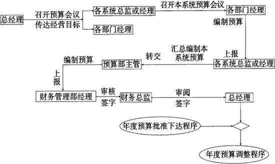 说明: 1.企业总预算由预算部主管组织预算员完成,财务管理部经理负责审核各项数据、正确性及预算报告编制的合理性。 2.财务总监审阅后上报总经理。 3.如果预算编制与目标相符,进入年度预算批准下达程序;如果预算需要进一步平衡、调整则进入年度预算调整程序。 |