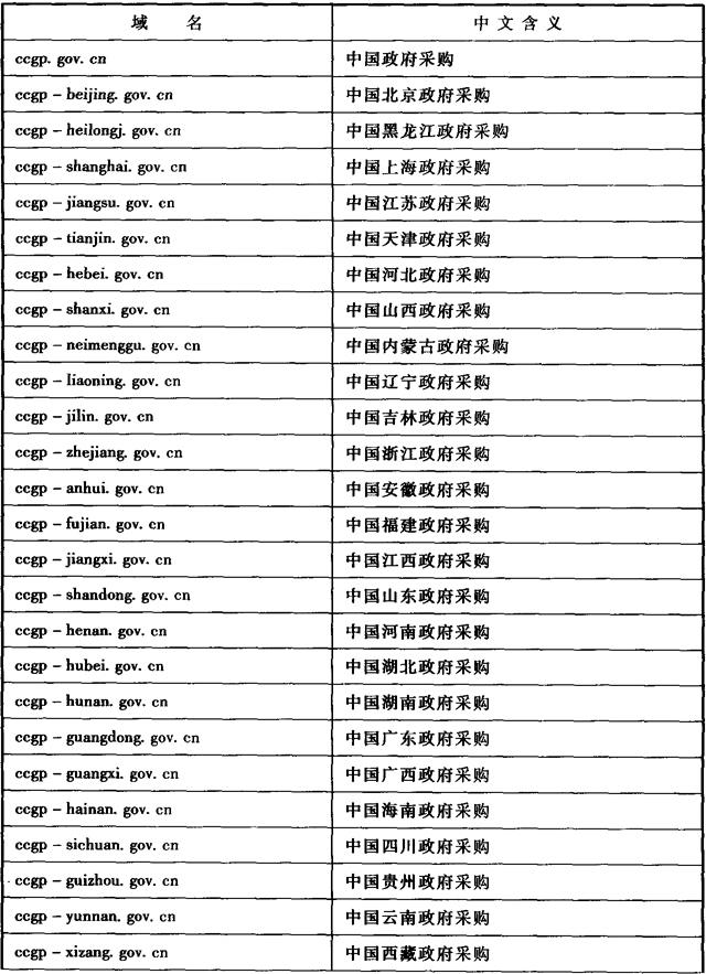 释义 | 财政部关于中国政府采购网有关管理问题的通知 国务院各部委、各直属机构,各中直机关,各人民团体,全国人大办公厅,全国政协办公厅,高法院,高检院,解放军总后勤部,武警总部,各省、自治区、直辖市、计划单列市财政厅(局),新疆生产建设兵团财务局: 为加强政府采购信息网络建设,在全国范围内建立起统一、规范的政府采购信息发布渠道,提高政府采购工作的公开性和透明度,财政部创办了“中国政府采购网”,并计划于2000年12月31日正式开通。现将有关网络管理事项通知如下: 一、“中国政府采购网”是财政部开发设计和主办的用于全国政府采购信息统一管理的专业网站。其国际互联网网址域名为中国政府采购的英文缩写:www.ccgp.gov.cn。“中国政府采购网”与财政部正在开发、建设中的基于政府采购业务的内部信息管理系统和包括在线招投标在内的电子商务系统共同组成中国政府采购信息网络系统。 二、为了做到网络互联互通、减少重复建设、降低网络建设和维护的费用支出、体现信息的规模优势,中国政府采购网实行“统一开发、统一管理、集中发布、分级维护”的管理体制。即由财政部统一负责网站的开发设计、域名注册、系统建设、宣传推广及日常运行等管理工作,各级政府采购管理部门和执行部门必须及时加载信息,按统一的域名使用并维护中国政府采购网。 三、“中国政府采购网”栏目设置主要有政策法规、理论园地、各地动态、经验交流、采购预告、招标公告、中标信息、专家库信息、供应商及商品信息等,在开通初期其主要功能是发布政府采购信息公告。随着基础条件的改善和互联网技术的发展,将开发设计标书下载、网上询价、电子投标、网上评标、网上支付等政府采购电子商务(G to B)系统。 四、为了加强网络统一管理,减少网络设备的重复购置,财政部将通过在“中国政府采购网”上建立虚拟主机的方式,为各地方政府采购部门分别设计风格统一的网页并注册域名(见附表)。各分网计划在2001年上半年全部开通,各分网为“中国政府采购网”的有机组成部分。 已经开通的有关政府采购网站,今后要继续使用的,请于2001年2月底前向财政部国库司提出申请,由财政部进行资格审查和认证后并入全国网络。今后有关单位拟单独建立政府采购网站的,应向财政部国库司申请,经批准后,按财政部统一要求和统一软件进行系统建设。 五、按照信息相对集中、受众分布合理的原则,财政部指定“中国政府采购网”为全国政府采购信息公告的网络媒介。根据网络实行分级维护的工作要求,各地方、各部门按规定应当公告的政府采购信息(如公开招标信息、中标信息、政策信息等)均应当在最短的时间内加载上网,具体方法和程序参照《政府采购信息公告管理办法》(财库[2000]7号)执行。 在网络开通初期,可将需要公告的信息通过信函、传真等方式上报财政部,由财政部信息网络中心集中加载。随着信息量的增加,将来可通过电子邮箱或采取由各地方、各部门通过网络在线直接录入的方法加载信息。 六、建立政府采购电子信息网络是衡量政府采购规范运作的重要标志,是落实和体现政府采购透明度原则的主要途径,也是各级政府采购工作的重要内容之一。各级政府采购管理部门和执行部门要加强对政府采购信息网络建设工作的领导,指定专人作为“中国政府采购网”通讯员(并于1月底前报上一级政府采购管理机关备案),负责相关信息加载和系统维护,充实网络内容,保证网络正常运行。 “中国政府采购网”联系方式: 地址:北京市西城区三里河南三巷(邮编:100820) 财政部信息网络中心“中国政府采购网” 联系电话:010-68553153 传真:68553153 联系人:刘晓东 财政部国库司政府采购处 联系电话:010-68551264 传真:68551214 联系人:高志刚 附表:中国政府采购网各分网域名一览表 二〇〇〇年十二月二十八日 附表:中国政府采购网各分网域名一览表 |