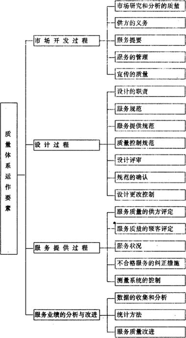释义 | 质量体系运作要素 GB/T19004·2-ISO9004-2描述了服务组织质量体系的典型运作要素。根据服务质量环的四个部分,每个部分分为若干个运作要素。如图14.3-3所示,共20个运作要素。 图14.3-3 质量体系运作要素 1.市场开发过程 通过市场调研来确定顾客和社会对该项服务有哪些需要;对已经确定的那些需要进行分析、综合和归纳,并结合服务组织的实际情况,进行必要的整理和加工,提升为服务设计的依据——服务提要。所确定的服务提要的正确与否将对服务组织近期的运营和长远的发展具有决定性的影响。 在市场开发过程中有以下五个运作要素。 (1)市场研究和分析的质量 这个运作要素有以下两个要点: ①明确与市场开发有关的影响 ·顾客的需要和期望 管理者首先要对主要顾客群体进行调查和分析,了解他们的特点,进而了解他们的需要和期望,如服务的档次、等级、规格、多样性要求、安全和可靠的程度、费用的高低,以及可用的价值等。 ·辅助性服务 管理者要认识到服务不能单打一,没有辅助性服务(如大型百货商场与维修服务,航空公司与售票网点等),主体服务也就不能发挥最佳的效能。 ·竞争对手的活动业绩 管理者要注意在市场竞争中扬长避短,着眼于突出自己服务组织和所提供服务的特色,来吸引更多的顾客。 ·有关法规 对所开发的服务涉及的相应法规,如安全、卫生、环境保护、财会,以及服务业务有关的国家和国际标准、规范等,应有充分的了解,并据之对顾客的需要和期望进行充分的评审,使之完全符合法规要求。 ·信息的分析和评审 市场研究和分析的质量常常取决于对已经收集到的信息进行的分析和评审。 ·与职能部门的协调 确定和提升服务需要并形成服务提要过程中,应与本服务组织中所有影响服务的职能部门相协商,在服务组织总的方针和目标下,达到认识的一致。 ·市场的发展和新技术及竞争的冲击 研究市场需求的变化趋势,新技术与竞争对本服务领域的冲击。 ·质量控制方法的应用 相关或(和)相似的服务组织所应用的质量控制方法及其效果的调查研究,以及需要改善的地方和创新的要求。 ②制定市场开发质量活动的程序 市场研究和分析的质量是由若干个质量活动所保证的。管理者在市场开发过程中必须首先制定相应的程序,按照程序所规范的步骤和方法来策划和实施有关的质量活动。因此,市场开发过程是有计划并按照一定的程序来进行的。 (2)供方的义务 这个运作要素有以下三个要点。 ①确切表达供方的义务 服务组织作为供方,必须把对顾客所承担的义务以某种形式向顾客和社会确切地表达。这种表达可以是明显的或者是含蓄的方式。 ②审查和协调供方的义务 供方成文的、明显的义务在发布之前应经过严格的审查,因为这些义务规定了顾客所接受服务的各项应达到的要求,不可有任何虚假和不周之处,也不可含糊不清,否则将引起不应产生的服务责任问题,造成服务组织信誉的下降和经济的损失。 ③加强与顾客的联系 供方一个非常重要的工作就是与顾客进行充分和有效的联系,以达到顾客和社会都了解该项服务供方承担的义务。 (3)服务提要 一旦作出了提供某项服务的决定,就必须写出形成文件的服务提要。明确服务提要的内容: ①市场研究和分析的结果。 ②已经批准的供方的义务。 ③顾客需要的规定。 ④服务组织能力的要求。 (4)服务的管理 服务的管理是指对所开发的某项服务的全过程的管理。在这个运作要素中着重说明了管理者的职责。在市场开发过程中管理者的职责有以下三个方面,也是这个运作要素的要点。 ①制定程序。 ②制定计划时间表。 ③保证服务提要的内容要求。 (5)服务的宣传 服务的宣传是指服务组织向顾客和社会所作的对该项服务的有吸引力和实事求是的介绍。 2.设计过程 服务设计的依据是市场开发过程的工作结果,即把市场开发过程中所制定的服务提要转化为规范。规范包括以下三种: 服务规范:规定了所提供的服务; 服务提供规范:规定了提供该项服务的方法和手段; 质量控制规范:规定了控制和评价服务特性和服务提供特性的程序。 在设计过程中有以下七个运作要素: (1)设计的职责 服务设计的职责在服务设计前应由管理者作出明确的规定。使服务设计人员理解服务设计中对服务缺陷的预防比在服务提供中的纠正费用更少,并能取得更佳的经济和社会效益。 服务设计的主要职责是对服务规范、服务提供规范和质量控制规范的策划、准备、编制、批准、保持和控制。 (2)服务规范 服务规范依据服务提要规定了一项服务应达到的水准和要求,也就是我们所说的服务质量标准。这个运作要素有以下三个要点: ①在明确依据基础上完整地阐述服务规范。 ②设计服务规范的基点在于说明和规定服务特性。 ③服务特性应有验收的标准。 (3)服务提供规范 这个运作要素有以下六个要点: ①明确服务提供规范设计应包含的内容 ·清晰地阐述直接影响服务业绩的每一项服务提供特性; ·对每一项服务提供特性规定切实可行的验收标准; ·提出服务提供过程所要求的各项设备、设施、材料等物质资源的类型和数量,这些物质资源必须满足达到服务规范的要求; ·服务提供过程中所要求的人员的数量和技能,这些人力资源必须满足达到服务规范的要求; ·为服务提供过程提供产品和