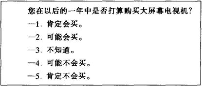 在市场调查中用以调查消费者对某种商品购买愿望的调查方法。这种调查表一般是针对具体的产品或品牌而进行,调查表将消费者对某一产品或品牌的购买愿望分为几个连续的等级。例表如下: