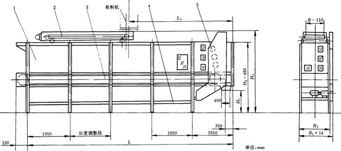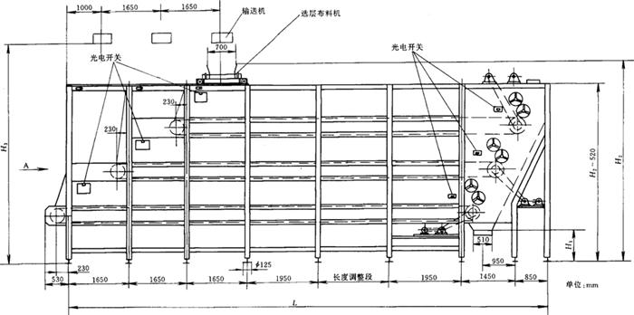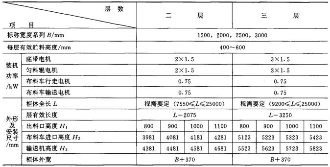 释义 | 贮柜 (一)单层贮柜 1.结构特点 (1)贮柜主要由柜体、布料车、底带、机架和均料辊等组成(见图9-8-8)。柜体与物料接触部分为不锈钢材料,其上设有观察窗并设有光电管探测物料。底带采用旁链式结构,输送速度可调。 图9-8-8 单层贮柜外形图 1-柜体 2-布料车 3-底带 4-机架 5-匀料辊 (2)布料方式分往复布料和跟踪布料两种。跟踪布料时进出料可同时进行;往复布料时具有物料的掺配作用。 2.主要技术参数 常用几种单层贮柜的技术参数见表9-8-10。 表9-8-10 单层贮柜主要技术参数 注:1.*电机功率依据柜体的长度和宽度确定。 2.生产厂家不同其参数会略有变化。 3.外形尺寸 见图9-8-8。 4.生产厂家 昆明船舶设备集团公司,秦皇岛烟草工业机械厂,张家口通用机械厂等烟机制造厂。 (二)多层贮柜 1.结构特点 (1)多层贮柜是指设有2~3个底带形成2~3层贮存区的贮料装置。外形见图9-8-9和图9-8-10。 (2)该设备配有选层布料机,可向任一层布料,由同一口出料。但该柜缺少物料的掺配功能。 2.主要技术参数 几种多层贮柜的技术参数见表9-8-11。 表9-8-11 多层贮柜主要参数 注:不同厂家产品其参数略有不同。 3.外形尺寸 见图9-8-9和图9-8-10。 图9-8-9 双层贮柜外形图 图9-8-10 三层贮柜外形图 4.生产厂家 昆明船舶设备集团公司,秦皇岛烟草工业机械厂,张家口通用机械厂等。 (三)对顶式贮柜 1.结构特点 (1)该类型贮柜基本结构与单层柜类同,是两个同长度单层柜为一体,共用一出料口(见图9-8-11)。 图9-8-11 对顶式贮柜外形图 (2)用一布料车向二柜体内布料,布料方式同单层贮柜,具有物料的掺配功能。 2.主要技术参数 见表9-8-12。 表9-8-12 对项式贮柜主要参数 注:不同厂家的产品其参数略有差异。 3.外形尺寸 见图9-8-11。 4.生产厂家 秦皇岛烟草工业机械厂,张家口通用机械厂,铁道部徐州机械厂等。 |