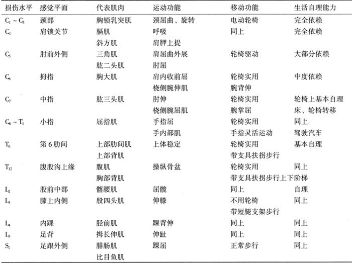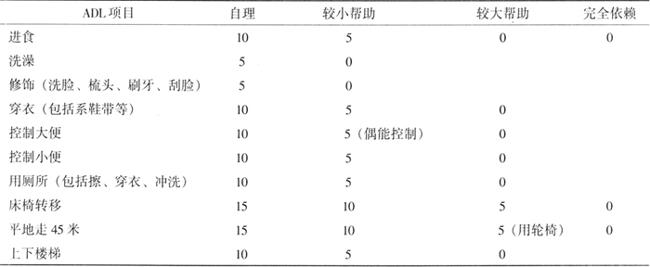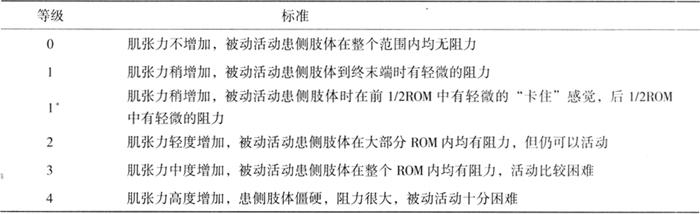 释义 | 躯体功能评定 脊髓损伤后,为了明确损伤的水平和功能情况,必须进行功能的评定。通过康复评定,了解患者残留的功能,也为康复训练提供指导。临床上主要有以下几种功能评定: 一、损伤水平和预后判定 (一)损伤程度判定 美国脊髓损伤学会(America Spinal cord Injury Association,ASIA)在2000年修订的脊髓损伤神经学分类国际标准见表16-5(具体评分标准见细则)。 表16-5 脊髓损伤神经学分类国际标准(2000年修订)(ASIA) 在神经损伤平面以下,包括骶段保留部分运动与感觉功能时,可判定为不完全损伤。ASIA提出的损伤程度分级见表16-6。其中A级和B级合称运动完全性(motor complete)损伤。 表16-6 ASLA损伤程度分级 (二)损伤水平与功能预后 由于脊髓节段与脊椎节段在解剖位置上不一致,脊髓损伤水平不能根据脊椎损伤水平判断,而需根据各节段脊髓所支配肌肉的肌力检查及皮肤感觉检查来判定。代表脊髓各节段肌肉及该节段功能保留时的活动功能恢复的预计见表16-7。 表16-7 脊髓不同节段的运动、感觉平面及损伤时的功能预后 由于邻近节段对同一肌肉的重叠支配,如果一节段支配的代表肌肉肌力为3级,其下一节段代表肌肉肌力为0,而上一节段的代表肌肉肌力基本正常,可判定损伤平面在该节段。 损伤后早期进行手法肌力检查以确定损伤平面时,常可因病人身体虚弱、疼痛、不能合作等因素使检查结果失准。为此近来有人对大脑皮质运动区适当部位进行磁电刺激(magnetoelectric stimulation),同时观察靶肌肉的运动或肌电活动,来判断运动通路的完整与否,借以较精确地判定损伤平面。由于两侧损伤平面也可能不一致,有时须左右分别记录。运动与感觉水平也可能不一致,一般以运动平面为主作记录。 二、肌肉功能评定 (一)肌张力评定 上下肢肌张力增高及肌痉挛对上肢和手的精细动作和行走功能有明显影响,故上下肢功能评定时应对肌张力及肌痉挛状态进行评定。 1.肌张力分级 一般按对关节进行被动运动时所感受的阻力进行肌张力及肌痉挛状态的评价。通常将肌张力分为以下几种类型(表16-8): 表16-8 肌张力分级评定 2.痉挛评定 若患者出现肌张力增高,为了进一步评定痉挛程度,通常采用Ashworth痉挛量表和改良Ashworth量表(Modified Ashworth Scale,MAS)。两者是应用最多的评定痉挛的量表,具有良好的效度和信度。二者的区别在改良Ashworth量表在等级1与2之间增加了一个等级1+,其他完全相同表16-9。 表16-9 Ashworth痉挛量表与改良Ashworth痉挛量表 注:没有1+即是Ashworth痉挛量表。 近年来,国外有学者认为,Ashworth痉挛量表和改良Ashworth量表只评定了肌张力(被动活动肢体时所受到的阻力),而忽略了与痉挛关系密切的腱反射和阵挛,因此不够全面。Pandyan等复习了文献中应用Ashworth痉挛量表和改良Ashworth量表评定痉挛的报道,发现二者评定上肢痉挛的信度优于下肢。 3.踝关节痉挛评定 对下肢痉挛,可以采用综合痉挛量表(composite spasticity scale,CSS),据报告具有良好的效度,其信度也较高。CSS是由加拿大学者Levin和Hui-Chan于20世纪90年代初提出,包括3个方面:跟腱反射、肌张力及踝阵挛。评定方法及评分标准如下: (1)跟腱反射:病人仰卧位,髋外展,膝屈曲。检查者使踝关节稍背伸,保持胫后肌群一定的张力,用叩诊锤叩击跟腱。0分:无反射;1分:反射减弱;2分:反射正常;3分:反射活跃;4分:反射亢进。 (2)踝跖屈肌群肌张力:病人仰卧位,下肢伸直,放松。检查者被动全范围背伸踝关节,感觉所受到的阻力。0分:无阻力(软瘫);2分:阻力降低(低张力);4分:正常阻力;6分:阻力轻到中度增加,尚可完成踝关节全范围的被动活动;8分:阻力重度(明显)增加,不能或很难完成踝关节全范围的被动活动。 (3)踝阵挛:病人仰卧位,下肢放松,膝关节稍屈曲。检查者手托足底快速被动背伸踝关节,观察踝关节有无节律性的屈伸动作。1分:无阵挛;2分:阵挛1~2次;3分:阵挛2次以上;4分:阵挛持续,超过30秒。结果判断:7分以下无痉挛,7~9分(不含7分)轻度痉挛;10~12分中度痉挛;13~16分重度痉挛。 (二)肌力评定 用代表脊髓有关节段神经运动功能的肌肉的手法测试(MMT)进行评定,通常将肌力分成0~5级,各级的评定标准见表16-10。 表16-10 徒手肌力检查法分级法 三、生活活动能力(Activities of daily Living,ADL)评定 Barthel指数产生于50年代中期,由Florence Mahony和Dorothea Barthel设计并用于临床,包括10项内容,根据是否需要帮助及其程度分为0分、5分、10分、15分4个功能等级,总分为100分,得分越高,独立性越好,依赖性越小。评分在60分以上者基本能完成基本的日常生活活动,59~41分者需要帮助才能完成基本的日常生活活动,40~21分者需要很大帮助,20分以下者完全需要帮助。具体评分项目见表16-11。 表16-11 Barthel指数评分表 附:Barthel指数评分标准 说明:如病人不能完成所订标准时则为0分。 1.进餐 10分:食物放在盘子里或桌上病人能拿到的地方,在正常时间内可以独立完成进餐;如果需要帮助,可以用刀来切食物,使用盐等调味品。 5分:需要较多帮助或在较长时间内才能完成进餐。 2.床-轮椅转移 15分:独立完成整个过程。如安全到达床边,刹住轮椅,抬起脚踏板,安全移到床上,躺下;或在床上坐起,移动到床边,必要时改变轮椅的位置,再由床转移到轮椅上。 10分:在完成上述过程中,某些步骤需要给予一定的帮助、提醒或监督,以保证安全完成。 5分:能自己在床上坐起,但要帮助才能转移到轮