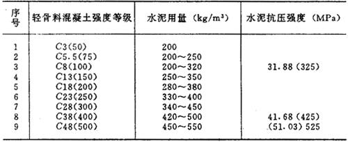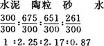 释义 | 轻混凝土材料用量计算 凡小于1900kg/m3的混凝土称为轻混凝土。具有保温隔热、吸声及抗震性能较好的特点。轻混凝土按其组成成分为轻骨料混凝土、多孔混凝土、大孔混凝土三种类型。 轻骨料密实混凝土属于传统的密实普通混凝土范畴。只是用较轻的蜂窝状或微孔结构的骨料来代替普通骨料而已。其轻骨料品种繁多,如各种陶粒(粘土陶粒、粉煤灰陶粒、页岩陶粒)、碎砖、炉渣、珍珠岩、浮石、蛭石、膨胀聚苯乙烯等。 多孔混凝土是砂浆和胶凝材料中存在着孔隙,如泡沫混凝土、加气混凝土等。 大孔混凝土因骨料之间存在孔隙(有时在骨料内部也存在孔隙),如无砂大孔混凝土、少砂大孔混凝土等。 轻骨料混凝土:轻骨料混凝土配合比基本参数的确定如下: (1)水泥抗压强度及用量 不同的混凝土强度等级的水泥抗压强度及水泥用量如表5-10 表5-10 不同强度轻混凝土的水泥强度和水泥用量 注:(1)表中的水泥用量下限值适用于圆球型(如粉煤灰陶粒、粘土陶粒)等、普通型(如页岩陶粒,膨胀珍珠岩)的粗集料;上限适用于碎石型(如浮石、膨胀矿渣等)的粗集料;采用轻砂时,水泥用量宜采用表中的上限值。 (2)轻集料混凝土的最大水泥用量不限超过550kg/m3。 (2)用水量及有效水灰比 每立方米混凝土的总用水量中减去干轻骨料1小时吸水量后的净用水量称为有效用水量,其有效用水量根据混合料和易性要求按表5-11选用。 表5-11 轻骨料混凝土的有效用水量 注:(1)表中数值适用于圆珠型和普通型粗骨料,对于碎石型粗骨料须按表中数值增加10千克左右的水。 (2)所用的砂为普通砂。 (3)轻骨料混凝土的砂率 砂率大小对施工和易性影响较大,轻骨料混凝土砂率选择可参见表5-12进行。 表5-12 轻骨料混凝土的砂率 〔计算例〕 采用C13(150号)粉煤灰陶粒混凝土制作大型墙板,机械振捣成型。选用31.88兆帕(325号)硅酸盐水泥,粉煤灰陶粒松散容重为690kg/m3,1小时吸水量(质量比)为15%,普通砂松散容重为1550kg/m3,试计算材料用量。 解:选用水泥用量按表5-10为300kg/m3,根据施工条件,有效用水量按表5-11为160kg/m3,细骨料的总体积为1.40kg/m3,砂率按表5-12选用30%。则轻骨料混凝土配合比为: 砂用量=1.40×0.30=0.42m3 砂重=0.42×1550=651kg 陶粒用量=1.40-0.42=0.93m3 陶粒重=0.98×690=675kg 附加水量=675×0.15=101kg 总用水量=160+101=261kg 粉煤灰陶粒混凝土单位重量比为: 多孔混凝土 泡沫混凝土是用机械方法将泡沫剂水溶液制成泡沫,再将泡沫加入含硅材料(砂、粉煤灰)、钙质材料(石灰、水泥)、水及附加剂组成的料浆中,经混合搅拌、浇注成型、蒸气养护而成的轻质多孔混凝土。 泡沫混凝土保温性能好,容重轻,如无筋泡沫混凝+容重分为300、400、500kg/m3。其材料用量计算公式为 ①水泥用量计算公式 式中 C-1m3泡沫混凝土的水泥用量; rc-水泥密度(计算采用3.1); b-泡沫剂发泡倍数(计算采用15); K-泡沫泥浆的过剩水系数(计算采用1.25); r-泡沫混凝土干容重; rb-泡沫剂密度(计算采用1.007)。 按上述公式计算所得水泥用量如下表: 表5-13 考虑到实际施工时水泥损耗及由于运输浇注等损耗因素,根据泡沫混凝土不同容重,乘以系数,一般按如下确定: 300kg/m3,水泥用量=206.5×1.20=247.8kg 400kg/m3,水泥用量=290.4×1.20=348.5kg 500kg/m3,水泥用量=374.2×1.15=430.3kg ②用水量计算式 水泥的用水量可用水灰比求得,一般水灰比为0.4-0.6,浓缩泡沫剂加温水溶成泡沫剂,为1∶4-1∶2,稀泡沫剂加冷水为1∶7-1∶12,如采用水灰比为0.55,则用水量的计算公式: 式中 W-用水量;C-水泥量。 按上式求得用水量如下表: 表5-14 泡沫剂加温水采用1∶4,即0.80×4=3.20kg 稀泡沫剂加冷水采用1∶10,即3.20×10=32kg 用水量计算结果如下表: 表5-15 ③浓缩泡沫剂用量计算式 根据实验资料,每立方米泡沫混凝土需用浓缩泡沫剂0.80千克。浓缩泡沫剂每千克所用的各种材料,根据化学试验分析,求得如下计算公式: 式中的胶量为2.1,水为1.4,松香为1,碱液为1.14(密度1.14)。 〔计算例〕 如下: 根据以上计算泡沫剂各种材料,折成每立方米泡沫混凝土所需用量为: 胶用量=0.372×0.8=0.298kg 松香用量=0.177×0.8=0.142kg 碱液用量=0.202×0.8=0.162kg |
