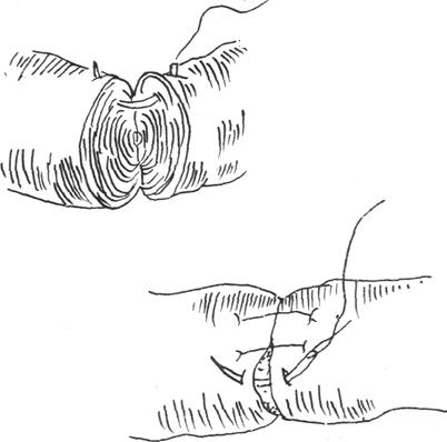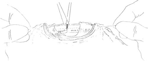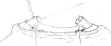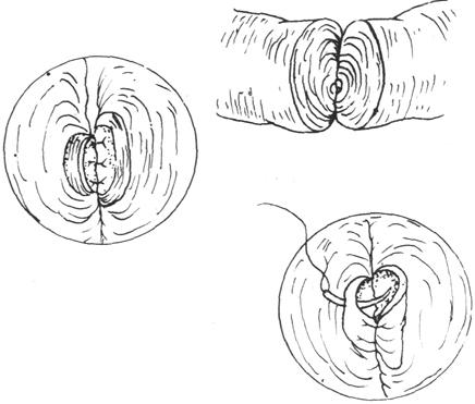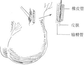 释义 | 输精管复通术 最早报道的输精管吻合术见于1931年。当时手术是很粗糙的,术后复孕率仅为5~35%。近30年来,随着输精管绝育术的增加而要求作输精管吻合术的绝对人数也大大增加,相对比例也有增加。美国作输精管绝育术已稳定在每年50万例左右,其中,有2~6%要求复通。要求复通的原因,各国情况不一。在发达国家,如美国主要是离婚后再婚;在发展中国家,如孟加拉国主要是术后子女死亡。随着外科技术的提高,尤其是显微外科在输精管吻合术上的应用,复通成功率大为增加,不少报道都在90%以上。 输精管绝育术后,因子女死亡或某些术后并发症,如非手术治疗不愈的附睾郁积症,思想疑虑引起的严重的性功能障碍等,可作输精管吻合术。 一、术前准备 (1)若为了复孕,则术前应使受术者知道手术有失败的可能性,这样不但可取得受术者的充分合作,而且对其家庭、夫妇关系等都是很重要的。 (2)询问绝育手术方法,了解是第一次作吻合术,还是由于吻合术失败而再次手术,以及上次失败的原因。 (3)术者应对受术者亲自做局部检查,注意附睾端输精管的长度,结节大小以及精囊端输精管是否扪得清楚。 (4)按阴囊手术对受术者的皮肤作术前准备。 二、手术方法 (一)常规手术法 1麻醉 用2%盐酸普鲁卡因8mg在近皮下环处作精索内注射,以少许麻药作切口浸润。若为再次吻合或精神过度紧张,亦可用骶管麻醉或腰麻,必要时加强化麻醉。 2.切口 将输精管结节固定在阴囊前外侧表浅处,根据结节大小等局部情况作一相应大小的切口。 3.游离输精管 用分离钳分离结节周围组织,以输精管皮外固定钳或细头鼠齿钳夹住结节并将其提出。用输精管固定钳将结节精囊端输精管套住,纵向切开套住输精管被膜,在直视下用8号注射针刺破管壁,用尼龙线或粗马尾由此向精囊端插入,若局部无梗阻,再以5rn1生理盐水进行注射,进一步明确精道的畅通情况。检查后,游离正常输精管近1cm在该处系一丝线。以同样方法作游离附睾端输精管(图9-5-1)。当刺开附睾端输精管时往往有浓稠的奶油色液体溢出(取此液体作涂片,镜检有无精子),若无溢出,可扪压附睾。用尼龙线或粗马尾探输精管腔,了解附睾端长度。若过短,可将附睾部弯曲的管道游离牵直,便于吻合。游离过程中应尽量不伤血管,尤其是输精管动脉。 图9-5-1 提出、游离结节并系线牵引 4.离断结节 结扎结节两端的输精管,分别在结扎处的附睾和精囊侧切断输精管,将结节放回阴囊内旷置;用直蚊式钳分别夹住附睾端和精囊端输精管残端(图9-5-2)。 图9-5-2 用直蚊式钳夹住两残端,在相对应处缝合一针 5.吻合输精管 在输精管无扭曲的状态下,用6~0尼龙线在两端拟吻合处先将输精管被膜及肌层缝一针(图9-5-1),以防手术过程中掉入阴囊内。用眼科有齿镊固定精囊端输精管,以锐刀在拟吻合处整齐切断输精管;紧接着将无针座的7号针(普通7号注射针去掉针座,磨光,不能有毛刺)由断端插入管腔,当进入约1cm时穿过管壁和阴囊壁,将尼龙线或马尾等支撑线由针管引出阴囊外(图9-5-3)。以同样方法处理附睾端输精管,使支撑线两端处在阴囊外(图9-5-4)。徐徐拉直支撑线,此时可见输精管自然良好吻合,在这种状态下将先缝的一针打结,然后再等距离纵行全层缝合3~4针(图9-5-5)。检查无出血后予以复回。缝合皮肤切口(切口小亦可不缝合)。支撑线垫以橡皮管打结固定(图9-5-6)。 图9-5-3 用无针座7号针由精囊端穿出输精管壁及阴囊壁,将支撑线引出阴囊外 图9-5-4 引入附睾端支撑线 图9-5-5 拉紧支撑线,在残端对合良好情况下,全层缝合3~4针 图9-5-6 支撑线垫用橡皮管打结固定 6.同法作对侧 安放橡皮引流条。 若用多次吻合或附睾尾阻塞不能再行输精管吻合时,可在结节远睾端与附睾作侧侧吻合(图9-5-7),但成功率远较输精管吻合术低,因此,关键还是力求作好输精管端端吻合术。 图9-5-7 输精管附睾吻合 (二)显微外科手术法 上面介绍的传统常规手术方法,一般都要在输精管腔内置入金属线(不锈钢、银丝等)、动物毛(马尾、猪鬃等)、尼龙线及细管状物等。这些支撑物对组织有一定的刺激性,可使局部组织增生,影响复通效果;或在数天拔出后,在前壁留下孔眼,形成精子肉芽肿,也有可能造成再次梗阻。至于输精管与附睾管间的端侧吻合或侧侧吻合,则几乎是难以成功的。针对上述不足,从70年代末期开始,显微外科技术大量应用于临床,使复通效果有了飞跃性的进步。1968年用狗作实验,传统常规方法输精管复通率仅8%,而显微外科方法达到了95%。在临床上也收到同等好的复通效果。随着显微外科技术的发展,及其在输精管吻合术上的应用,无疑对输精管绝育术的开展是一个推动。尤其是对那些想作绝育术,而又怕术后无法复通的人,将是一个促进。另一方面,开展显微外科技术,要求备有较贵的仪器设备,要求较高的技术技能,在我国基层医疗单位,一时还不能广泛使用这种先进的方法。因此,在争取早日使用显微外科技术的同时,做好传统的常规手术是极其重要的。显微外科技术手术作输精管吻合的主要步骤如下: (1)骶管麻醉或腰麻。 (2)在阴囊一侧作3~4厘米切口。 (3)如同常规手术一样,进行输精管探查。一定要看到附睾端有液体溢出,并查见精子。若输精管不通,应探查附睾管,直至有液体溢出并查见有精子为止。 (4)吻合术在25~40倍显微镜下进行。将输精管两端置于固定钳内,使两