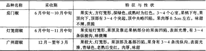 表1-3-5 甜椒优良品种及其特性