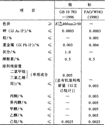 释义 | 辣椒红 别名 辣椒红色素、辣椒油树脂 编码 GB 08.106;INS 160C 化学结构 主要着色成分为(Ⅰ)辣椒红素和(Ⅱ)辣椒玉红素,属类胡萝卜素。此外,还含有一定量非着色成分辣椒素(Ⅲ)。 (Ⅰ)辣椒红素(Capsanthin) C40Hs6O3 相对分子质量 584.85 (Ⅱ)辣椒玉红素(Capsorubin) C40H56O4 相对分子质量 600.85 (Ⅲ)辣椒素(Capsaicin):目前所知呈辣味组分有14种,其基本结构骨架相同,只是侧链的R基团有差异。 辣素:R=-(CH2)4-CH=CH-(CH3)2 C18H27NO3 相对分子质量 305.40 二氢辣素:R=-(CH2)6-CH-(CH3)2 降二氢辣素:R=-(CH2)5-CH=CH-(CH3)2 高二氢辣素:R=-(CH2)7-CH=CH-(CH3)2 高辣素: R=-(CH2)4-CH=CH-CH2-CH-(CH3)2 上述前两种的含量占辣味组分含量的80%以上。前5种的含量占辣味组分含量的90%以上。其余的含量甚微。 性状 深红色粘性油状液体。依来源和制法不同,具有不同程度的辣味。在石油醚(汽油)中最大吸收峰波长为475.5nm,在正己烷中为504nm,在二硫化碳中为503nm和542nm,在苯中为486nm和519nm。可任意溶解于丙酮、氯仿、正己烷、食用油。易溶于乙醇,稍难溶于丙三醇,不溶于水。本品耐光性差,波长210~440nm,特别是285nm紫外光可促使本品褪色。对热稳定,160℃加热2h几乎不退色。Fe+3、Cu+2、Co+2可使之退色。遇Al+3、Sn+2、Pb+2发生沉淀,此外,几乎不受其他离子影响。着色力强。色调因稀释浓度不同由浅黄至橙红色。 制法 将茄科植物辣椒(Capsicum annum L.)的成熟干燥果实之果皮粉碎后,用乙醇、丙酮、异丙醇或正己烷抽提,滤液经纯化加工而制得。 质量标准 注:中国辣椒红标准有待修订(参见辣椒橙)。 毒理学依据 1.LD50 小鼠口服大于75mL/kg(bw)(雄性)(油溶型色素); 小鼠腹腔注射大于50mL/kg(bw)(雄性)(油溶型色素)。 小鼠口服大于75g/kg(bw)(雄性)(水分散型色素); 小鼠腹腔注射大于50g/kg(bw)(雄性)(水分散型色素)。 2.ADl 不能提出(FAO/WHO,1994)(本品安全性高,现各国均许可使用)。 使用 着色剂。 1.使用注意事项 (1)本品不耐光照,特别是285nm波长光使之迅速退色,因此,应尽量避光。L-抗坏血酸对本品有保护作用,一般用量0~5g/L。 (2)本品经乳化可制成水溶性或水分散性色素,可用于饮料、冰棍、冰淇淋、雪糕等。 2.使用范围及使用量 (1)我国《食品添加剂使用卫生标准》(GB 2760-1996)规定:可用于冰淇淋、糕点上彩装、雪糕、冰棍、饼干、熟肉制品、人造蟹肉、酱料、糖果,按生产需要适量使用。 (2)FAO/WHO(1984)规定:用于加工干酪,按良好生产规范;用于黄瓜,300mg/kg(单用或合用)。 |