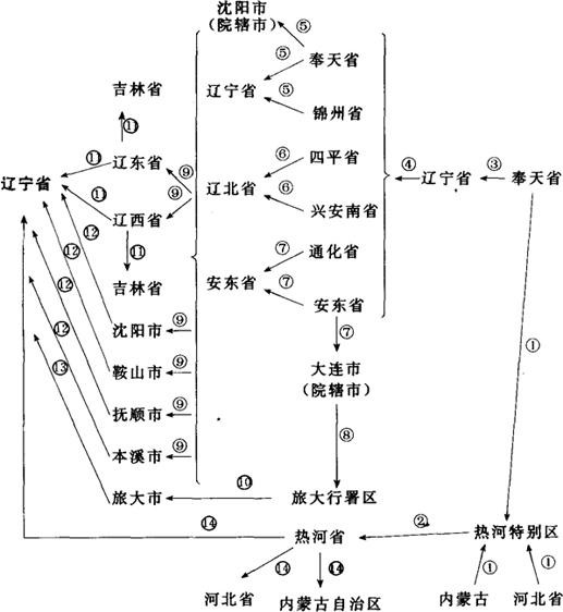释义 | 辽宁省 位于东经118°53′~125°46′、北纬38°43′~43°26′之间。 以境内辽河得名,简称“辽”。 ①1912年称奉天省;1914年划今辽宁省西南部、河北省东北部、内蒙古东南部建热河特别区。②1928年热河特别区改为热河省。③1928年奉天省改称辽宁省。④1931年“九·一八”事变后,东北三省(辽宁省、吉林省、黑龙江省)被日军占领,划分为奉天、锦州、安东、通化、四平、兴安南、吉林、间岛、滨江、牡丹江、三江、东安、北安、黑河、龙江、兴安东、兴安北17个伪省。1947年6月5日公布东北新省区方案,将17个伪省合并为9省(辽宁省、安东省、辽北省、吉林省、松江省、合江省、嫩江省、黑龙江省、兴安省)。⑤1947年奉天省与锦州省合并,称辽宁省,同时沈阳市升格为院辖市。⑥1947年四平省与兴安南省合并称辽北省。⑦1947年通化省与安东省合并,称安东省。1947年大连市升格为院辖市。⑧1949年大连市改为旅大行署区(省级)。⑨1949年撤销辽宁省、辽北省、安东省,建立辽东省和辽西省;同时设立沈阳市、抚顺市、鞍山市、本溪市四个直辖市;这四个直辖市1949年由东北人民政府领导,1952年改由东北行政委员会领导。⑩1950年旅大行署区改为旅大市(直辖市);1950年由东北人民政府领导,1952年由东北行政委员会领导。⑾1954年,撤销辽东省,原辽东省所属安东、营口、辽阳3市及安东、庄河、新金、复县、岫岩、盖平、营口、海城、凤城、辽阳、宽甸、桓仁、新宾、清原、西丰等15县并入辽宁省;通化、辽源2市及东丰、西安、海龙、通化、柳河、辉南、靖宇、抚松、长白、临江、辑安等11县划归吉林省;1954年撤销辽西省,原辽西省所辖大部分市、县划归辽宁省;四平市及梨树、双辽2县划归吉林省。⑿1954年撤销沈阳市、鞍山市、抚顺市、本溪市4个直辖市,划归辽宁省领导。⒀1954年旅大市(直辖市)改为省辖市,归辽宁省领导。⒁1956年1月1日,撤销热河省;原热河省所辖的建平县、北票县、朝阳县、凌原县、建昌县、喀喇沁左旗划归辽宁省;其他辖区分别划归河北省与内蒙古自治区。 1949年设辽东省,省会安东市,由东北人民政府领导;1952年改由东北行政委员会领导。1949年设辽西省,省会锦州市,由东北人民政府领导;1952年改由东北行政委员会领导。1954年辽东、辽西2省合并成立辽宁省,省会沈阳市,由中央直接领导。 参见78页“内蒙古自治区”、473页“河北省”。 辽西县 见126页“左权县”。 辽西省 1949年建立,辖今辽宁省的西部;1954年撤销,除四平市与双辽、梨树两县并入吉林省外,其余地区和辽东省合并设辽宁省。 1954年辽西省撤销前统辖:锦州市、阜新市、四平市,锦县、锦西县、兴城县、绥中县、义县、北镇县、盘山县、台安县、辽中县、黑山县、新民县、彰武县、法库县、铁岭县、开原县、康平县、昌图县、昌北县、双辽县、梨树县,阜新县土默特旗。 参见215页“辽宁省”、226页“吉林省”。 辽西省国营盘山农场 见705页“盘山县”。 辽州 见126页“左权县”。 |