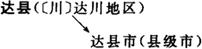 释义 | 达县 位于东经106°59′~107°50′、北纬30°49′~31°33′之间。 1912年称达县;1976年划达县城管区置达县市(县级市),隶达县地区。1993年7月更名为达川市。 1912年隶四川省。1950年隶川北行署区。1952年复隶四川省。 参见237页“达川市”。 达县市 见237页“达川市”、239页“达县”。 |