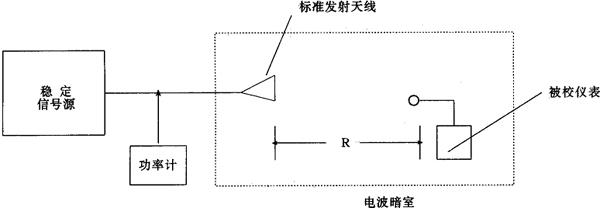 释义 | 近场场强标准 1.近场磁场标准 近场磁场标准的原理与远场标准相似,只是要求磁场强度比远场大得多,因此标准发射环天线的导线要相当粗,有时将几个环并联使用。 2.近场电场标准 近场电场标准随频率和量程的不同,有平行板电容器电场标准、平行双线电场标准、单极天线电场标准、长线天线电场标准、波导小室电场标准、横电磁波室电场标准和在电波暗室中用角锥喇叭建立的电场标准等。 (1)横电磁波室(TEM cell)电场标准 用横电磁波室建立的近场电场标准如图7.12-2所示。横电磁波室是一个矩形同轴线,它与信号源、负载组合在一起,在该室内建立起一个封闭的标准电场,且可由下式计算 图7.12-2 横电磁波室近场电场标准 式中 Pn——馈入室内的净功率;Rc——室特性阻抗的实部;V——该室的输入电压;d该室上板(或下板)到中心隔板的距离。此法覆盖的频段上限为500MHz。 (2)电波暗室内建立标准场 在微波频段,通常测量电磁波的功率密度。图7.12-3示出电波暗室内用角锥喇叭天线建立的标准功率密度场,它由稳定的微波信号源、标准发射天线和功率计组成。 图7.12-3 电波暗室内建立标准场 电波暗室又称电波无反射室,其采用高性能的吸波材料来减小试验区的反射能量,人为地构成一个接近于自由空间的条件。目前暗室的主要结构型式为矩形和锥形,可以覆盖的频率范围为30MHz至100GHz,静区的最大反射电平低至-70dB。 【参考文献】: [1]王立吉、金国钧编着,高频电压的计量测试,计量出版社,1986。 [2]李世雄、彭幼伯等编着,低频电压的计量测试,计量出版社,1988。 [3]冯新善、吴幼璋等编着,高频、微波功率的计量测试,计量出版社,1987。 [4]张关汉、李光仪等编着,高频集总参数阻抗的计量测试,计量出版社,1986。 [5]胡希平、李湘编着,微波阻抗与反射的计量测试,计量出版社,1988。 [6]蔡新泉、关志仁等编着,高频、微波噪声的计量测试,计量出版社,1988。 [7]郭允晟、苏秉炜等编着,脉冲参数与时域测量技术,计量出版社,1989。 [8]吴毅、都世民等编着,高频、微波场强和干扰的计量测试,计量出版社,1986。 [9]谢上次、徐燕清编着,高频、微波相移的计量测试,计量出版社,1992。 [10]艾明、吴达慎等编着,失真与调制参数的计量测试,计量出版社,1989。 [11]黄福芸等主编,计量知识手册,中国林业出版社,1986。 [12]陈国瑞、华荣喜等编,工程电磁场与电磁波,西北工业大学出版社,1990。 [13]Ghose,R.N.,Microwave Circuit Theory and Analysis,McGraw-Hill Book Company,Inc.,1963。 |