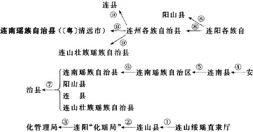 释义 | 连南瑶族自治县 位于东经112°03′~112°24′、北纬24°19′~24°55′之间。 境内金坑乡一带林海莽莽,被誉为“杉木之都”。 ①1912年改连山绥瑶直隶厅为连山县。②1927年析连县、连山、阳县所辖的瑶区设立连阳“化瑶局”。③1935年改连阳“化瑶局”为安化管理局。④1946年改安化管理局为连南县。⑤1953年1月25日成立连南瑶族自治区(县级)。⑥1955年6月更名为连南瑶族自治县。⑦1959年,撤销连南瑶族自治县、阳山县、连县、连山壮族瑶族自治县,合并设立连阳各族自治县。⑧1960年,恢复阳山县,其他部分改称连州各族自治县。⑨1961年撤销连州各族自治县,恢复连南瑶族自治县、连县、连山壮族瑶族自治县。 |