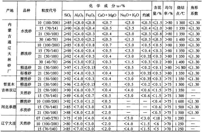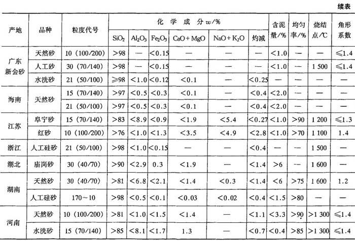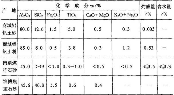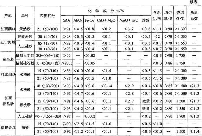 释义 | 造型用原材料 3.3.5.1 原砂 1.硅砂 硅砂主要由粒径为0.05~3.35mm的透明、浅色石英颗粒组成,其化学成分为二氧化硅,因此硅砂也称石英砂. 我国铸造生产中所使用的硅砂主要依据来源和加工方式不同分为天然硅砂和人工硅砂两大类. 天然硅砂是由火成岩风化、沉积而形成的砂矿,又根据其成矿条件的不同,有河砂、湖砂、海砂、风积砂之分.各地产硅砂都有不同的含泥量,所以品位高的原砂要经过水洗和擦磨才能投入生产. 人工硅砂是将石英岩或石英砂经选矿、清洗粉碎加工而成的.早期使用较多,近十几年已被石灰石砂和天然硅砂所代替. 硅砂中的石英多以同质异晶的形态存在,它的密度为2.65g/cm3,莫氏硬度为7级,纯石英的熔化温度为1713℃. 硅砂中的主要杂质是指除石英外的长石、云母、铁的氧化物、硅酸盐及黏土等矿物.这些矿物能降低硅砂的耐火度并能影响硅砂的性能.表3-77是长石和云母等矿物的性能. 表3-77 长石和云母等矿物的性能 铸造用硅砂的技术条件主要依据国标GB9442—88的规定来分级、分组、分类,见表3-78~表3-81. 表3-78 铸造用硅砂按SiO2含量分级(GB9442—88) 表3-79 铸造用硅砂按粒度分组(GB9442—88) 表3-80 铸造用硅砂按角形系数分类(GB9442—88) 表3-81 铸造黏结剂用标准砂粒度组成(ZBJ31006—89) 根据国家标准《铸造用试验筛》(ZBJ31004—88)的规定,用于测硅砂粒度的试验筛筛孔尺寸见表3-82. 表3-82 试验筛筛孔尺寸(ZBJ31004—88) 硅砂牌号表示方法如下: 例:ZGS96-42Q-30 硅砂在铸造中用的标准砂是国家检定的具有黏结剂性能的硅砂,其一般技术条件应符合ZBJ31006—89的规定,二氧化碳的质量分数不大于90%;含泥量及含水量不大于0.3%;角形系数不大于1.30;粒度组成应符合表3-81的要求;其余应符合表3-82的要求. 国内主要天然硅砂和人工硅砂的产地、性能及生产单位见表3-83. 表3-83 铸造用硅砂的主要产地及规格(ZGS90—98) 2.石灰石砂 石灰石砂是以碳酸钙(CaCO3)为主要成分的矿岩,经过选矿、破碎、筛选分级后制成的铸造用砂,外观为白色、灰白色,呈多角形的颗粒.石灰石砂中除含方解石、白云石等主要矿物外,还有黏土、石英等杂质,使用时要有所控制.石灰石砂的化学成分及粒度分组见表3-84和表3-85. 表3-84 石灰石砂化学成分 表3-85 石灰石砂粒度分组 3.特种砂 特种砂是非硅质砂,是不以游离的SiO2为主要组成的原砂,主要有锆砂、镁砂、铬铁矿砂、钛铁矿砂、刚玉砂等.由于它们各有不同的适应范围和要求,国家有相应的标准规定. 锆砂的主要矿物成分是锆英石(ZrO2·SiO2),外观为无色锥形颗粒,导热性好,线膨胀系数校耐火度依含杂质多少不同在2190~2400℃之间.锆砂密度为4.6g/cm3,硬度7~8级,通常用于大型铸钢件厚壁处及合金钢用面砂或抗黏砂用涂料.锆砂按化学成分分级见表386,按粒度分组见表3-87. 表3-86 锆砂按化学成分分级(ZBJ31005—88) 表3-87 锆砂按粒度分组(ZBJ31005—88) 镁砂的主要成分是MgO,是天然菱镁砂(MgCO3)经高温煅烧后经筛选而成.镁砂密度为3.5g/cm3,硬度在4~4.5级,熔点为2800℃.镁砂主要用于高锰钢铸件的型、芯砂和涂料.其化学成分见表3-88及表3-89. 表3-88 镁砂化学成分 表3-89 镁橄榄石砂 铬铁矿砂的主要成分组成为(FeO·Cr2O3),是各种尖晶石的混晶组成.我国这类矿分布较少,大多依靠进口.它的密度为4.8g/cm3,莫氏硬度为6级,耐火度大于1900℃.其主要杂质是碳酸盐(CaCO3,MgCO3),在高温下分解出CO2,使铸件表面产生气孔,因此一般要经过高温焙烧使其分解,再加工破碎到一定粒度后使用.它主要用于铸钢件型、芯面砂和抗黏砂涂料.我国铬铁矿砂的行业标准见表3-90. 表3-90 铬铁矿砂规格(XQ/ZXS-3—86) 钛铁矿砂是我国自行开发的一种黑色颗粒铸造用砂.其主要成分为FeTiO2或FeO·TiO2.钛铁矿砂主要分布在沿海海砂中,其密度为4.7g/cm3,莫氏硬度为5级,熔点为1450℃,主要用于铸铁型砂.表3-91给出了钛铁矿砂的化学成分. 表3-91 钛铁矿砂规格(XQ/ZXS5—86) 刚玉砂是高纯度的Al2O3,是将高铝钒土经粉碎后在2000~2400℃高温下熔炼而成的.这种熔炼是一种再结晶过程,其产品呈白色菱形结晶,熔炼后的氧化铝粉中Al2O3的质量分数达99%~99.5%,铸造用白刚玉粉中Al2O3的质量分数大于97%,棕刚玉粉中Al2O3的质量分数大于92.5%.刚玉砂的密度为3.98/cm3,莫氏硬度大于9级,熔点达2500℃,热导率大,抗酸,抗碱,适于在大型铸钢件中做型芯砂或涂料.刚玉砂的有关规定(GB2470—83和GB2478—83)见表3-92. 表3-92 刚玉砂的规格 国内特种砂的主要产地及性能列于表3-93~表3-96. 表3-93 我国锆砂的主要产地及规格 表3-94 我国镁砂的主要产地及规格 表3-95 我国铬铁砂产地及规格 表3-96 国内主要钛铁矿砂的产地及规格 耐火熟料(铝钒土砂、焦宝石砂、煤扦石砂)主要成分为莫来石(3Al2O3·2SiO2),属硬质黏土,经高温锻烧后破碎,筛选而成.耐火熟料的耐火度一般随Al2O3含量增加而提高,当Al2O3的质量分数达72%时,耐火度可达1800℃.耐火熟料线膨胀系数小、耐火度高、抗渣性能好,多作为铸钢件的型、芯、面砂或涂料使用.国家标准《熔模铸造用铝钒土砂、粉》(GB12215—90)中规定了它的化学成分分级等,见表3-97~表3-100.国内耐火熟料的产地及规格见表3-101. 表3-97 铝钒土熟料砂、粉规格 表3-98 铝钒土熟料砂、粉按化学成分分级(GB12215—90) 表3-99 铝钒土合成料化学成分表 表3-100 铝钒土熟料按粒度分组 表3-101 国内耐火熟料的产地及规格 3.3.5.2 黏土 黏土是铸造生产中