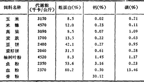 例1,某饵料工厂要配制一组池塘单养鲤鱼鱼种的配合饲料,营养指标要求:代谢能3100千卡/千克,含粗蛋白质34%、钙1.8%、磷1.2%,能量蛋白比为90-116,钙、磷比为1.4-2:1,饵料系数1.8-2.0之间。现有原料和经验配方:玉米15%、米糠10%、小麦麸9%、豆饼12%、菜籽饼10%、鱼粉30%、血粉2%、骨粉2%、榆树叶粉10%并添加1%的鱼用复合矿物质和0.2%的鱼用复合维生素,饵料系数为2.41。问配方应作如何调正?