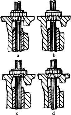 释义 | 配气机构主要零件的检修与装配 (一)气门导管的检查 气门导管严重磨损后,工作时气门在导管中晃动,造成气门头部偏磨、气门关闭不严及出现烧耗机油等现象。检查方法是:将新气门杆插入导管,用手摇动气门,看其摇动情况,如摆动明显,说明气门导管磨损严重,应予换新。换装新气门导管后,导管高出座孔基面的高度应符合要求。如过低,将导致气门关闭不严;过高,会使气门导管、摇臂和有关零件损坏。 (二)气门的检修 气门严重磨损后,气门下陷,不仅使汽缸压力降低,发动机启动性变坏,还会使功率明显降低,耗油率增大。通过检查,发现气门头圆柱部分高度小于1mm、气门严重烧伤和偏磨时,都应予报废换新。如气门密封环带有轻微磨损和烧蚀,可用手工研磨,恢复其严密性;如环带有麻点、伤痕,可进行磨修。 (三)气门座的检修 通过检查如气门座严重偏磨和烧蚀,可用铣削修复。 气门座铣削方法如图1-72所示。先选择适合气门直径、气门斜角的一组铣刀和适合气门导管直径的铣刀导杆,用45°铣刀先铣斜面,再用75°铣刀铣削下口,用15°铣刀铣削上口来调整密封带的宽度和位置,最后精铣45°斜面。铣好的气门座再与气门进行研磨,保证气门的密封性。 图1-72 气门座的铣削方法 a.粗铣45°斜面 b.75°铣刀铣下口 c.15°铣刀铣上口 d.精铣45°斜面 (四)气门弹簧的检查 检查气门弹簧的自由长度和有无扭曲变形及裂纹。如气门弹簧自由长度比标准长度小1~1.5mm,或有裂纹和变形,均应更换。 (五)凸轮轴的检修 凸轮轴常见的缺陷是弯曲、扭曲变形,凸轮和轴颈的磨损。通过检查如有上述缺陷,应通过校正和磨削凸轮和轴颈的方法进行修复。 (六)气门组的组装 将汽缸盖侧放,从气门座一边将气门杆插入气门导管,并使气门头与气门座接触,用干净木板贴住气门后,将缸盖平放,气门杆朝上,装上气门卡环,放下气门弹簧、弹簧座,对弹簧加压,使气门杆上的锁片槽露出后,装上两瓣锁片,再缓慢地放松弹簧,装配结束。装配后,两锁片的上平面应高出弹簧座0.5~2.5mm,两锁片上端面应平齐,两锁片之间的间隙不小于0.5mm。气门组组装后,应做密封性试验。试验方法是从进排气门道注入煤油,如在规定时间内无油从气门头处渗出。说明气门密封性符合要求。 |