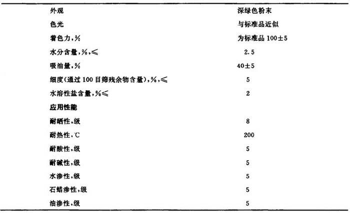 释义 | 酞菁绿G 【结构式】: 【释文】: 制法 由粗制铜酞菁与三氯化铝、工业盐、氯化亚铜共熔后,再经液氯氯化、稀释、酸煮、吸附等处理而成。 性质 深绿色粉末。不溶于水和一般溶剂。在浓硫酸中为橄榄绿色,稀释后呈绿色沉淀。 规格 GB 3673-83 用途 本品为塑料工业中广泛使用的有机绿色颜料。着色力强,色彩鲜艳。耐热性、耐光性优良,耐酸碱性和耐溶剂性亦佳。在树脂中容易分散,与白色颜料拼用可得到鲜绿色,与黄色颜料拼用可得果绿色,一般用量为0.005%。适用于聚氯乙烯、聚乙烯、聚丙烯、聚苯乙烯、尼龙、聚碳酸酯、ABS树脂、酚醛树脂、环氧树脂、纤维素树脂等多种塑料。本品的缺点是透明性较差。 本品还可用于橡胶的着色,在天然橡胶中使用时,硫化中的色稳定性好。在橡胶中不迁移。 国内生产厂 北京染料厂 镇江市颜料厂 上海染化一厂 天津染化六厂 上海油墨厂 重庆染料厂 广州染化厂 国外生产厂 |