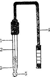 释义 | 酸度计的基本结构及性能 酸度计是由一支指示电极、一支参比电极及一个电位计组成。 (一)pH玻璃电极 1.pH玻璃电极的构造 pH玻璃电极是测定pH值中最常用的指示电极,它主要由以下几部分构成。 (1)电极球泡:是由具有氢功能的钠玻璃或锂玻璃熔融吹制而成。膜的厚度通常是0.05-0.15mm。 (2)电极支持管:由绝缘性能良好的铅玻璃或容积比阻至少为1014Ω/cm3的其他玻璃材料制成,其膨胀系数应与电极球泡玻璃一致,电极支持管的表面,一般涂一层硅薄膜,以改善电绝缘性和化学稳定性。 表2-12 常用国产酸度计的型号、规格和性能 (3)内参比电极:一般为银-氯化银电极,有时亦用甘汞电极。要求它电位稳定,温度系数小。 (4)内参比溶液:是具有一定pH值并含有氯离子的电解质溶液,最常用的是0.1N盐酸或中性磷酸盐和氯化钾的混合液。近来国产的玻璃电极中,内参比溶液大多已改用pH7.0。 (5)电极导线:其作用是把内部电极引出的电极电位传输到测量仪表。因pH玻璃电极的内阻极大,易受周围交流电场的影响及发生静电感应,故要求导线的绝缘性能好(>10”Ω)和有良好的屏蔽性能,一般是在电极口装以聚乙烯金属隔离线。隔离线可直接接地,也可以通过一个电容器再接地。 2.pH玻璃电极的性能: (1)不对称电位:由于电极的玻璃球膜内外表面性质的差异所引起的电位,称为不对称电位。良好的pH玻璃电极的不对称电位约为数毫伏,其大小决定于玻璃的组成,膜的厚度,吹制时的条件以及温度等。一般类型的玻璃电极,在刚浸入溶液时,不对称电位较大,而后随时间的推移不对称电位变小,直至降至一固定值。当温度与pH变化较大时,也能引起不对称电位的改变。在一定条件下不对称电位可保持恒定,只要不对称电位保持恒定,对测定电动势和pH就不发生影响。因此,在测量中用标准缓冲液校正电极时,其意义就是对消不对称电位。但当不对称电位过大时,在测定时其结果可能因环境条件的变化而改变,所以pH玻璃电极的不对称电位过大时不宜使用。 (2)电阻:pH玻璃电极的电阻一般在1-150MΩ之间,例如211、251、221型内阻为≤70MΩ,而231、65-1A型内阻为≤120MΩ。由漏电所引起的误差,决定于电极电阻与绝缘电阻和仪器输入阻抗的相对比值,所以选择pH玻璃电极的电阻与测定仪器的输入阻抗相匹配以及电极的绝缘防护是十分重要的。 (3)稳定性:稳定性是指电极玻璃抗化学侵蚀及机械破损的能力,一般pH玻璃电极的机械坚固性甚差,必须注意保护。化学侵蚀主要是使玻璃逐渐溶解,使膜变薄,内阻降低,功能减弱,所以玻璃电极不宜在酸性或碱性溶液中长期浸泡,并且在电极长期不用时也不宜一直浸在水中。 (4)电极的误差:根据pH玻璃电极的成分不同,有一定的适用范围,超过此范围即产生误差。目前国内常用的pH玻璃电极在温度为0-40℃时,其电位值在pH1-9.5之间才与pH值成直线关系,在pH高的待测液中(特别在含钠或钾盐的溶液中),产生碱误差,测得的结果偏低,这与玻璃的组成有关。若溶液的pH值低于1时,产生酸误差,玻璃的氢功能减低。并且在非水溶液中也会产生误差。另外,照射在玻璃电极上的日光或人照光能引起测定的pH值降低。因此对高精度的pH测量要注意光照影响。 图2-23 pH玻璃电极示意图 1.电极支持管(绝缘套管) 2.内参比电极(Ag-AgCl) 3.内参比溶液(0.1NHCl) 4.电极导线(屏蔽导线) 5.电极球泡(氢功能玻璃) 表2-13 pH玻璃电极与酸度计配套表 (二)参比电极 参比电极常用的为甘汞电极也有用银-氯化银电极,目前甘汞电极是含有饱和甘汞的氯化钾溶液与金属汞相接触的电极体系,以及盐桥两部分组成,两部分分别套以玻璃管。盐桥下端底部焊上石棉丝与外部测定液相通。盐桥所用溶液为饱和氯化钾溶液(图2-24)。在25℃时0.1mol、1mol和饱和氯化钾的电极电位(包括液接电位),分别为0.3376,0.2851,0.2443V。 图2-24 甘汞电极 1。甘汞芯 2.电极玻壳 3.盐桥溶液 4.液络部 5.电极导线 (三)电位计 电位计即毫伏计,用以记录电讯号的大小。可直接从毫伏计的度盘上读出pH值。所有与玻璃电极相匹配的电位计都必须是一个高阻抗的毫伏计。一般电位计的输入阻抗应是相匹配的玻璃电极内阻的1000倍为好。pHS-2型精密酸度计其输入阻抗达1012Ω,25型酸度计为1010Ω。输入阻抗低,能降低电位计的灵敏度。通常要求电位计具有稳定、线性良好的转换放大系统以及高精度的灵敏表头。 |
