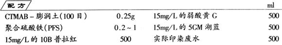 试验用的CTMAB-膨润土是用4%溴化十六烷基三甲胺(CTMAB)改性膨润土制得,100目;聚合硫酸铁(PFS)配成10%溶液。