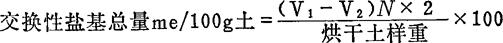 释义 | 醋酸铵法 1.试剂配制 (1)0.1N盐酸。 (2)0.05N氢氧化钠标准溶液。 (3)0.1%溴甲酚绿指示剂:称取溴甲酚绿0.1g,溶于100ml20%乙醇中。 2.测定步骤 取交换量中醋酸铵法测定中的已定容至250ml的NH4OAc淋滤液125ml,在瓷蒸发皿中蒸发浓缩,最后在水浴上蒸干。拭干外壁水滴,放入高温电炉,以700-800℃灼烧15min(或500℃半小时)。此时杯内物应呈白色。取出蒸发皿冷却。然后准确加入0.1N HCl20.0ml,小心加热,溶解残渣与驱除CO2。加溴甲酚绿2-3滴,用标准NaOH滴定,至溶液刚刚由黄变绿为止。 滴定后的溶液移入100ml容量瓶中,用蒸馏水反复洗净烧杯,洗涤液并入容量瓶,最后加蒸馏水至刻度,摇匀,保留作交换性钙、镁的测定。 另取20.0ml0.1N HCl,用标准NaOH作空白滴定。 3.结果计算 式中:V1——空白滴定消耗的NaOH毫升数; V。——测定液滴定消耗的NaOH毫升数; N——NaOH的当量浓度; 2——取用量倍数。 |
