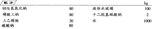 先将氢氧化钠在水中溶解,全部溶解后加入磷酸三钠,充分搅拌均匀,使它彻底溶解。然后再加入其余组分,混合,搅拌均匀,即成产品。