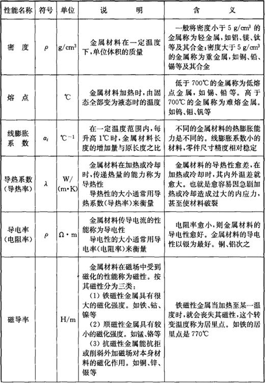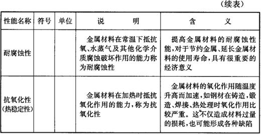 表2-2 金属材料的物理性能及化学性能