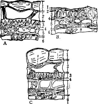 刘长江(1984)认为,种皮细胞结构对实际芸薹属品种鉴定是最有用的。十字花科种子种皮由表皮层、表皮下层、栅栏细胞层和色素层组成。前三层由外珠被发育而成。色素层由内珠被发育而成。从图7-1可以看出,表皮层细胞以黑芥较大,油菜则压缩为一薄层,而白芥为大型细胞。第三层栅栏细胞层,其栅栏形态和大小均有明显的差异,可以作为种或品种鉴定的依据。