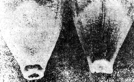 释义 | 鉴定大麦品种的性状 1.生长习性 在幼苗早期生长阶段,大麦可按其生长习性分为三种类型:匍匐型、半匍匐型、直立型。还可按叶数、叶色、叶的姿势来鉴定不同品种。 2.穗的姿势 抽穗后,大多数品种的穗是直立的,但达到成熟时,不同品种的穗可从直立形变成倾斜或弯曲的不同形状。 3.穗的棱数 按大麦小穗的发育情况,可分为三种类型:六棱、四棱和二棱大麦。 4.穗的密度和形状 多棱大麦的穗为松散型,二棱大麦为密集型。其形状为六角、四角和长方形。 5.穗轴节间形态 绝大多数多棱大麦品种的穗轴节向上弯曲,但二棱大麦的节间比较均等。穗轴节间基部形态在品种间存在差异。有的品种穗轴节膨大;而有的品种穗轴节向上弯曲;另外还有的品种则匀直。尤其是穗轴最下一节的形态,品种间的变化很大。因此,穗轴最下部二个节间的长度是区分品种的重要性状。 6.穗轴节间茸毛 一般穗轴外面表着生有不同密度的茸毛。其茸毛长度和密度与小基刺相似。但有的品种,虽然其他节间具有正常的茸毛,而其基部节间却光滑无茸毛。 7.内外稃 二棱大麦的外稃通常比多棱大麦为短,而密穗大麦品种的内稃却比松散品种为长。外稃形态不同品种之间有差异。有的品种外稃中肋隆起,而另外品种却不隆起。内稃边缘着生有茸毛。不同品种。其茸毛的长度和面积却有差异。并且其内外稃表面通常具有皱折和波纹,但皱折最多是出现在籽粒的中心区,顶部和腹面,并外稃基部边缘锯齿有无也有差异(图17-4)。 图17-4 有皮大麦品种外稃边缘锯齿的有无 左图为无锯齿;右图为有锯齿 8.芒 大麦品种的芒有差异。有的品种芒是直的,而有的品种是弯曲的,并且有的芒上有锯齿,另外品种都芒上无锯齿,为光芒(图17-6)。在成熟时,有芒品种,其芒张开,其张开角度品种间有差异,这是鉴定品种的重要性状。 图17-5 有皮大麦外稃基部凹痕和果脐大小 左图为凹痕明显果脐大;右图为无凹痕且果脐不明 芒色在绿熟期最为明显。有色芒品种,其可呈现不同的颜色。成熟时有的芒为黄色,而另外品种则为淡银灰色。 大麦芒的横切面为三角形。多数品种的芒具有锯齿,但不同品种,其锯齿形状和密度是存在差异的。特别是芒基部中肋上的锯齿数是鉴定品的有用性状。 9.穗色 通常穗上覆盖有一层蜡粉。如蜡粉很多,则穗上呈现出灰蓝色至淡绿色。在绿熟期,籽粒中脉和芒上的红色特别鲜明。但有的品种完全缺乏花青素。另外,有的品种虽然植株的其他部分存在色素,但穗上却无色,这种穗就称为无色穗型。 10.二棱大麦的侧面小穗 二棱大麦的侧面小穗是不发育的。但其品种间,其侧面小穗的宽度、顶端形状、内稃长度、外稃边缘的波曲等存在差异。并且侧边的分叉也是鉴定品种的性状。 11.粒形 虽然大麦籽粒的长、宽、厚度受环境因素的影响。但这种性状仍是鉴定品种的可靠依据。籽粒最宽部位是决定籽粒形状的主要因素。二棱大麦籽粒最宽部位是在中部,但多棱大麦却有上端。有的品种籽粒基部收缩变尖,另外品种则整粒较匀直。 大麦籽粒腹面在平板玻璃上的状态,不同品种之间有差异。有的品种为水平状态,而另外品种则胚端翘起。 12.粒色 籽粒颜色受内外稃颜色的影响。成熟籽粒多数为亮黄色。但也有黑色、红蓝色等品种。有的品种籽粒却完全黑色。但北欧国家不存在这种品种。花青素浓度还受环境条件的影响。如将籽粒浸湿后,其颜色变为更明显。 13.裸粒或带壳 按大麦颖果与稃壳的粘连情况,可分为裸大麦和带壳的皮大麦。 14.籽粒的对称性 多棱大麦籽粒侧边不对称,而二棱大麦籽粒侧边为对称。 15.侧脉锯齿 包着有皮大麦颖果的外稃基部有5条脉。中脉通常无锯齿。但内侧脉上部却有锯齿。这一性状可与无齿品种加以区分。但外侧脉却没有锯齿。并且在体视显微镜下,有的品种籽粒外稃上可看到小疣。 16.纵痕茸毛 大多数大麦品种的籽粒上的纵痕无茸毛,但有的品种却具有短茸毛(称为柔毛型品种),并且纵痕的宽度在品种间也有差异。 17.外稃基部形态 一般外稃基部有两种形态,即基部深凹和浅痕。第一种称为直立型,第二种称为下垂型。这与小穗密度有关,密穗品种一般属于深凹型,疏穗品种属于浅痕型(图17-5)。 18.小基刺 有皮大麦腹沟基部着生有具茸毛的基刺,(小基刺),其茸毛长度和稀密,以及它的长度在品种间存在差异(图17-7)。这也是鉴定品种的有用性状。 图17-6 大麦品种的光芒和刺芒 上图为光芒(浙农光芒二棱);下图为刺芒(肖山刺芒二棱) 图17-7 大麦籽粒的小基刺形态 左图小基刺长,茸毛短而密;右图小基稍短,茸毛长而稀 19.浆片 当小心地剥去有皮大麦籽粒外稃基部后,就看到颖果基部胚的外面附着两个浆片。不同品种,其浆片大小、形态、茸毛长短、稀密有差异。一般属于深凹型品种,其浆片较小,茸毛也较短,仅超过胚的边缘,其形态象春白菊的花朵,称为半围胚型。而属于浅痕型品种,其浆片较大,并包围着整个胚,象衣领,称为围胚型。 20.茎色 不同品种,其茎色也有差异。有色品种,在靠近节位置和茎基部的红色更为鲜明。 21.叶耳和节的颜色 在绿熟期,其茎节和叶耳上出现花青素颜色,其最下面的叶鞘也有色。但当植株黄熟时,节和叶耳上变为褐色。 22.剑叶长宽度 不同品种的剑叶长宽度存在差异,但受环境的影响。 23.穗颈形态 穗颈基部有一个突起的颈环绕着,其形态