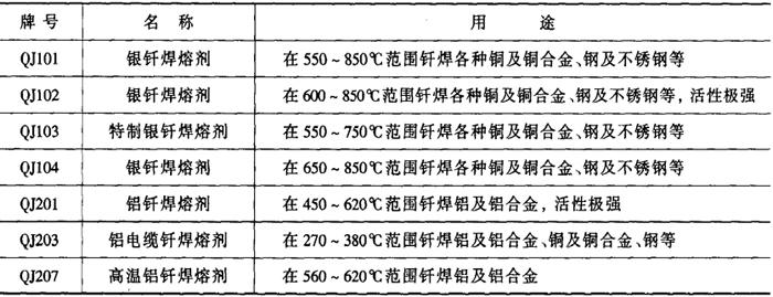 表1-9-9 常用钎焊熔剂的牌号及用途[5]
