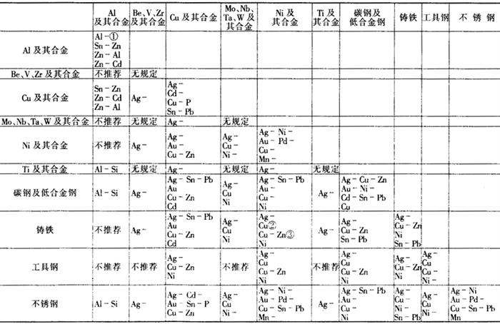 注:①Al-为铝基钎料,②Cuu为纯铜钎料,③Cuu-Zn为铜锌钎料。