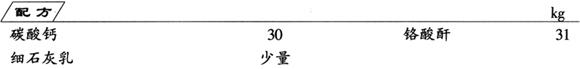将碳酸钙及铬酸酐投入反应釜中,在高温蒸汽作用下,使之混合反应达2h以上,反应温度控制在反应液沸腾为宜。用有抽风的回收装置回收产生的二氧化碳气体中夹带的铬酸雾粒。待二氧化碳基本上放尽后即为反应终点,此时用细石灰乳液中和反应液至pH值为8。再将反应液过滤,母液可在配料时循环使用,滤饼洗净后,经烘干、粉碎,即得成品。