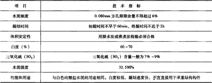 释义 | 钢渣白色水泥 钢渣白色水泥是以电炉还原渣为主要原料,加入适量经过煅烧的无水石膏,经充分混合磨细而制得的一种白色胶凝材料。钢渣白水泥的研制成功和生产是我国冶金工业废渣资源开发利用技术的重大突破,具有较大的技术、社会和经济效益。 钢渣白色水泥同白色硅酸盐水泥一样,应用范围比较广泛,已用于建筑粉刷、城市雕塑及建筑室内外装饰工程,如外墙挑檐、窗套、墙裙,室内彩色地面、窗台板、楼梯、立柱等,也可以配制成彩色水磨石或人造大理石。 为了保证施工质量,在使用钢渣白色水泥时必须注意以下方面: 1.钢渣白色水泥凝结速度快,对施工温度特别敏感,气温愈高凝结愈快,因而在施工时应考虑加入适量的缓凝剂。如果气温低于15℃时,可以不掺加缓凝剂。常用的缓凝剂为糖类,如葡萄糖、白糖、红糖等,或采用制糖的废液。 2.严格控制配料的比例。在进行配料之前,最好把成批的水泥混合均匀,以确保其颜色一致。调制彩色水泥时,应选用无机耐碱颜料,对光及大气必须具有较好的稳定性,且颜料的掺量不得超过水泥质量的5%,否则会影响水泥的强度。 3.钢渣白色水泥应单独使用,不得与普通硅酸盐水泥混用,否则会降低水泥强度,甚至出现崩溃。 4.钢渣白色水泥宜在保湿条件下进行养护,但不宜用浸水或蒸汽养护。 5.由于钢渣白色水泥中含有8%~10%的三氧化硫(SO3)和小于0.5%的游离氧化钙,所以水泥的pH值比较低,容易使钢筋产生锈蚀,故不能制作钢筋混凝土构件。 6.钢渣白色水泥应妥善进行保管,其贮存期一般不宜超过3个月。 表13-5为我国某厂生产的钢渣白色水泥的性能及技术指标。 表13-5 我国某厂生产的钢渣白色水泥的性能及技术指标 |