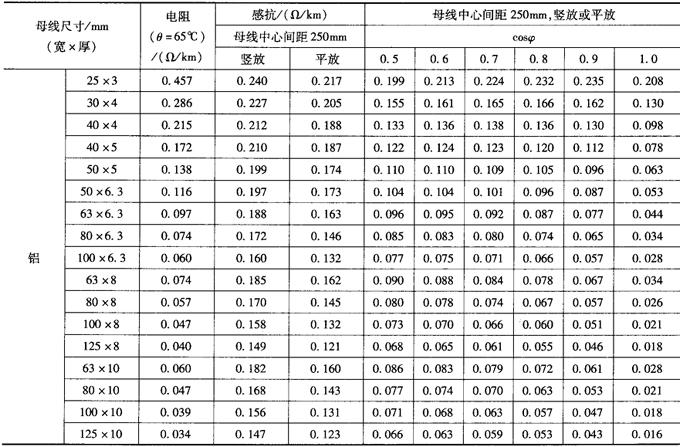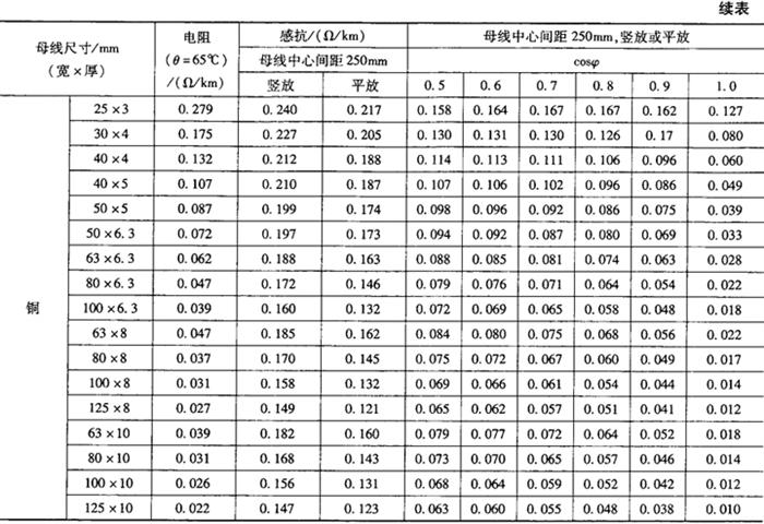 不同尺寸的铝母线、铜母线电压损失列于表12-55。