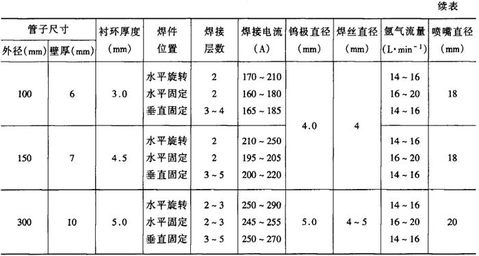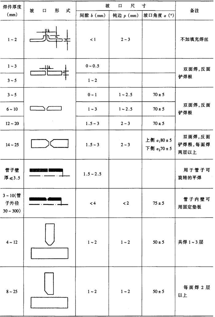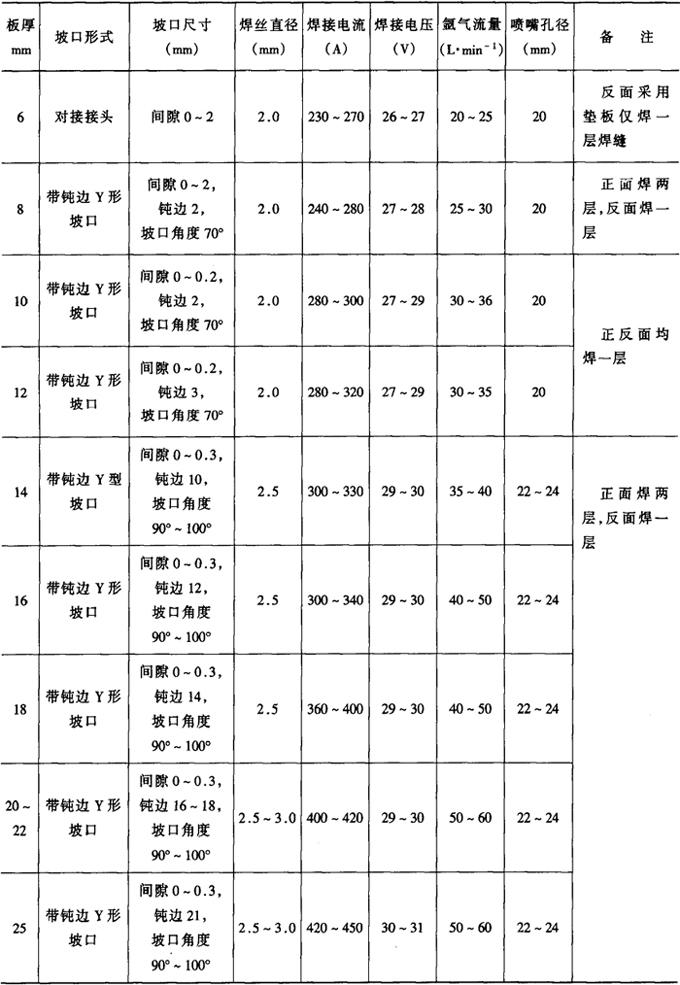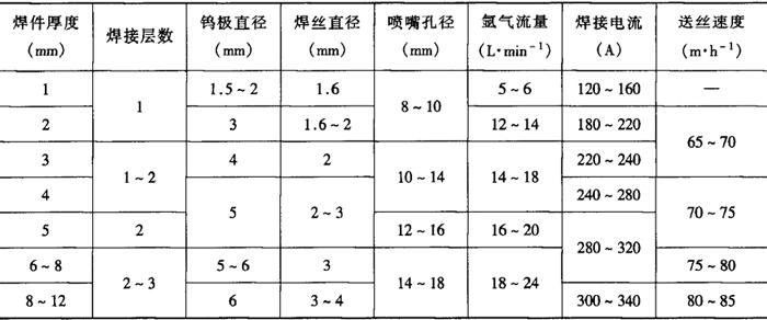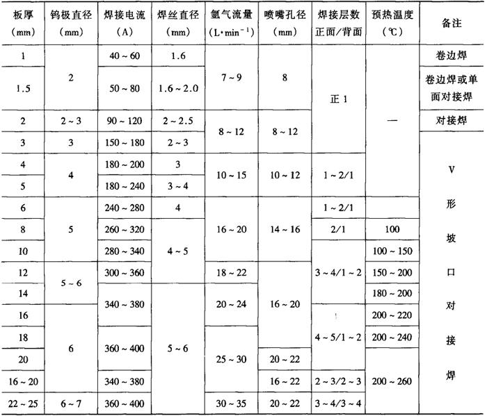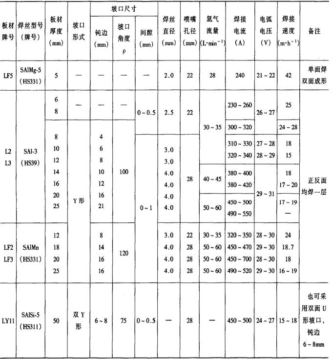 释义 | 铝及铝合金的氩弧焊 (一)手工钨极氩弧焊(TIG焊) TIG焊工艺最适于焊接厚度小于3mm的薄板,工件变形明显小于气焊和手弧焊。交流TIG焊阴极具有去除氧化膜的清理作用,可以不用溶剂,避免了焊后残留熔剂、熔渣对接头的腐蚀,接头形式可以不受限制,焊缝成形良好、表面光亮。氩气流对焊接区的冲刷使接头冷却加快,改善了接头的组织和性能,适于全位置焊接。由于不用熔剂,焊前清理的要求比其他焊接方法严格。 焊接铝及铝合金最佳的工艺方法是交流TIG焊和交流脉冲TIG焊,其次是直流反接TIG焊。 1.钨极 常用钨极材料分纯钨、钍钨及铈钨等。纯钨极的牌号有W1、W2,熔点和沸点均较高,不容易挥发,导电性差,载流能力小,使用寿命短。钍钨极的牌号有WTh-7、WTh-10、WTh-15、WTh-30,铈钨极的牌号有WCe-5、WCe-13、WCe-20,它们的导电性能好,载流能力强,有较好的引弧性能,电弧稳定性好,使用寿命长,其缺点是钍和铈均是稀土元素,具有一定的放射性,其中铈钨极放射性较小。目前铈钨极用量最多。 2.坡口及接头形式 钨极氩弧焊焊接铝及铝合金坡口尺寸和接头形式主要根据产品结构、厚度和焊接工艺确定,表2-7-13为铝及铝合金TIG焊的接头形式和坡口尺寸。 表2-7-13 铝及铝合金TIG焊的接头形式和坡口尺寸[1] 为了获得良好的焊缝成形,避免焊缝背面塌陷,可采用石墨或不锈钢制造的临时垫板(可拆除)。管子用厚2~5mm、宽20~50mm的内套做永久垫板。 3.焊接工艺参数 表2-7-14为纯铝、铝镁合金手工钨极氩弧焊的焊接工艺参数。铝合金管对接手工钨极氩弧焊的焊接工艺参数见表2-7-15,铝合金管对接氩弧焊时,在技术条件允许的情况下,采取在管内加衬环,留不超过6mm间隙,壁厚3~10mm的铝管在可旋转的水平位置、水平固定及垂直固定条件下进行全位置焊接。自动钨极氩弧焊焊接工艺参数见表2-7-16。交流钨极脉冲氩弧焊有加热速度快、高温停留时间短、对熔池有搅拌作用,焊接薄板、硬铝可得到满意的焊接接头,交流钨极脉冲氩弧焊对仰焊、立焊、管子全位置焊、单面焊双面成形,可以得到较好的焊接效果。铝及铝合金交流脉冲TIG焊的焊接工艺参数见表2-7-17。 表2-7-14 纯铝、铝镁合金手工钨极氩弧焊的焊接工艺参数 表2-7-15 铝合金管对接手工钨极氩弧焊工艺参数[1] 注:采用交流电 表2-7-16 自动钨极氩弧焊焊接工艺参数[1] 表2-7-17 铝及铝合金交流脉冲TIG焊的焊接工艺参数[1] 4.铝及铝合金TIG焊的常见缺陷及其防止措施 (1)气孔: ①产生原因 氩气纯度低或氩气管路内有水分、漏气等;焊丝或母材坡口附近焊前未清理干净或清理后又被污物、水分、汗水等沾污;焊接电流和焊速选择过大或过小;熔池保护欠佳,电弧不稳,电弧过长,钨极伸出过长等。 ②防止措施 保证氩气的纯度;焊前认真清理焊丝、焊件,清理后及时焊接,并防止再次污染。更新送气管路,选择合适的气体流量,调整好钨极伸出长度;正确选择焊接工艺参数。必要时,可以采取预热工艺,焊接现场装挡风装置,防止现场有风流动。 (2)裂纹: ①产生原因 焊丝合金成分选择不当;当焊缝中的含Mg量小于3%,或Fe、Si杂质含量超出规定时,裂纹倾向就增大;焊丝的熔化温度偏高时,会引起热影响区液化裂纹;结构设计不合理,焊缝过于集中或受热区温度过高,造成接头拘束应力过大;高温停留时间长,组织过热;弧坑没填满,出现弧坑裂纹等。 ②防止措施 所选焊丝的成分与母材要匹配;加入引弧板或采用电流衰减装置填满弧坑;正确设计焊接结构,合理布置焊缝,使焊缝尽量避开应力集中处,选择合适的焊接顺序;减小焊接电流或适当增加焊接速度。 (3)未焊透: ①产生原因 焊接速度过快,弧长过大,焊件间隙、坡口角度、焊接电流均过小,钝边过大;工件坡口边缘的毛刺、底边的污垢焊前没有除净;焊炬与焊丝倾角不正确。 ②防止措施 正确选择间隙、钝边、坡口角度和焊接工艺参数;加强氧化膜、熔剂、熔渣和油污的清理;提高操作技能等。 (4)焊缝夹钨: ①产生原因 接触引弧所致;钨极末端形状与焊接电流选择得不合理,使尖端脱落;填丝触及到热钨极尖端和错用了氧化性气体。 ②防止措施 采用高频高压脉冲引弧;根据选用的电流,采用合理的钨极尖端形状;减小焊接电流,增加钨极直径,缩短钨极伸出长度;更换惰性气体;提高操作技能,勿使填丝与钨极接触等。 (5)咬边: ①产生原因 焊接电流太大,电弧电压太高,焊炬摆幅不均匀,填丝太少,焊接速度太快。 ②防止措施 降低焊接电流与电弧长度。保持摆幅均匀。适当增加送丝速度或降低焊接速度。 (二)熔化极氩弧焊(MIG焊) MIG焊焊接铝及铝合金通常采用直流反极性。焊接薄板材和中等厚度板材时,可用纯氩做保护气体;焊接厚大件时,采用(Ar+He)混合气体保护,也可采用纯氦保护。焊前一般不必预热,板厚较大时,也只需预热起弧部位。 根据焊炬移动方式的不同,MIG焊可分为半自动MIG焊和自动MIG焊。 1.熔化极自动惰性气体保护焊(MIG焊) 根据焊件厚度选择坡口尺寸、焊丝直径和焊接电流等工艺参数。表2-7-18为部分纯铝、铝镁合金和硬铝的自动MIG焊工艺参数。自动氩弧焊熔深大,6mm的铝板对接焊时可不开坡口,当厚度较大时,一般采用大钝边,但需增大坡口角度,以降低焊缝的余高。 表2-7-18 部分纯铝、铝镁合金和硬铝的自动MIG焊工艺参数[1] 注:①正面层焊完后必须铲除焊根,然后进行反面层的焊接。 ②焊炬向前倾斜10°~1