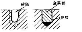 图8-10 镶粘金属块法修复铸件砂眼或缺陷