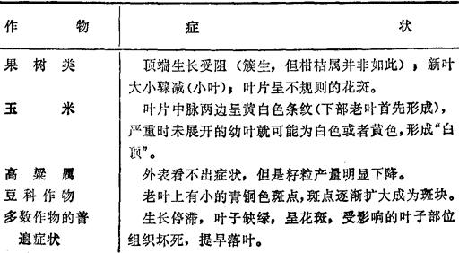 释义 | 锌(Zn) 在新南威尔士州农业中,锌是一种重要的微量元素。缺锌分布普遍而没有规则,并且发生在重要的灌溉地区。 新南威尔士州农业中锌的问题,实际上是局限于一些灌溉的大田作物和几种园艺作物。种植作物地区,通常以连续5年的土壤施肥来防治缺锌,而在园艺区,叶面喷施已日益受到重视。 1.土壤中的锌 土壤锌存在于各种土壤矿物和未分解的有机物质中,还有很少量的代换态锌存在于土壤胶体上。各种矿物和有机质中的锌,必须分解后才对植物有效。土壤代换性复合体上的锌通常不能满足作物生长的需要。 大多数土壤贮锌丰富,但其中大部分或者以硅酸锌存在,或者为二氧化硅、其它氧化物和碳酸盐包被的矿物形态存在。这些形态的锌对植物均是无效的。 大部分土壤的pH对锌的有效性有直接的影响。当土壤pH上升到6.0以上时,锌的有效性和溶解度都降到很低的水平。碱性土壤中的石灰性物质可进一步增加土壤固定锌的能力。许多化肥,特别是促进锌有效化的氮素化肥,在施肥位置影响土壤pH,锌的有效性因土壤pH降低而增加(图14.3)。 无机锌容易在土壤中沉淀,因此,它的移动性受到了限制。随着植物的生长和养分的吸收,把土壤中的锌带到土表,一旦植物残体腐烂,并变成土壤有机质时,锌就积聚在土壤表层。因此锌与土壤有机体之间是紧密联系的。 2.锌的缺乏 缺锌由几方面的原因引起,可以分为: (1)天然的,即这些地方土壤锌的总量比较低(母岩含锌矿物少)以及即使土壤中有丰富的锌存在,但对植物是无效的(见上述有关锌有效性的论述)。镁含量高的粘质土壤也能降低锌的有效性。 气候对锌的有效性也会有影响,例如在玉米区,寒冷、湿润的春天可暂时引起缺锌的问题,但缺锌的症状随着生长季节的推进而消失。 (2)土壤管理措施对作物锌的营养有明显的影响。 ①施石灰,如同pH对锌有效性的影响,已有说明。 ②有机质增加土壤有效锌的含量。但要注意,在果园里大量施用禽粪,会诱发缺锌。 ③磷素,土壤含磷量高——自然的还是人为的,均可使锌变为无效。 ④灌溉区平整土地,在挖土的地方,往往由于锌总量低的底土的暴露,而可能引起锌的不足。 ⑤土壤侵蚀会产生如同平整土地一样的结果。 ⑥轮作,需锌多的作物(如玉米)的后作比需锌少的作物(如高粱)的后作缺锌来得普遍。 有些作物种类或品种对锌的反应比另一些种类或品种敏感。前者如大粒种子的夏作物(玉米)、亚麻子和某些豆类品种。 ⑦休闲,在昆士兰的达令丘陵区(Darling Downs),长期休闲可加重缺锌。 ⑧由于氮促进整个植株的生长,因此,氮肥能增加作物对锌的需要量超过土壤有效供应量。硝化作用所产生的酸化影响也有一些作用。故氮肥的形态对于作物锌的营养可能是很重要的。 在新南威尔士州所有的灌溉区,特别是这个州的中部和北部碱性比较强的土壤(pH较高)上,那些灌溉的夏作物、海岸和南部灌溉区的柑桔,以及一些其它地区的大田作物、园艺作物和蔬菜作物都曾报道过锌的效果。 3.植物体中的锌 植物体内的锌和铁、锰一起与叶绿素形成有关;一些酶系统中也含有锌,而且是合成蛋白质所必需;它也是一些植物生长素即调节植物生长速度和发育的化合物的组成成分。锌还对植物吸收和有效利用水分方面起调节作用。 锌集中在植物体内生长最旺盛的部位,如在茎的上端,抽芽和长叶的茎节,以及在为幼苗易于利用的种子中。 锌不易从老组织移动到新组织,因此,在缺锌时,新的生长部位表现出缺素症状。 4.缺锌症状 锌不足,大部分植物都有其一定的生长特症和叶子症状,尽管这些外表症状要在缺锌达中等至严重程度时才明显表现出来。 对锌营养敏感的各种作物中,有的表现为明显的缺锌症状,而另外一些却一点也看不出来。果树,特别是柑桔属和桃树类是锌的良好指示植物;一些大田作物如玉米和亚麻对锌特别敏感;蚕豆、棉花、马铃薯和大豆对锌也敏感;洋葱、高粱属和番茄对锌只有中等的反应;而牧草(紫花苜蓿、三叶草和禾本科牧草)以及冬季谷类作物很少表现出缺锌病症。一些作物的特殊缺锌症状描述于表12.1。 表12.1 锌的缺乏症状 5.防治措施 (1)确定需要量 生长早期,缺锌最为严重。为此,对土壤进行缺锌诊断和在种植以前施用必需的肥料是很重要的。因为到作物缺锌症状表现出来时,常因防治太迟,而损失产量。 假如怀疑缺锌,则可施用一些锌进行验证。不论看不看得出结果,还得分析植株组织样品作为双重检验,这样的一些试验是识别“潜在饥饿”的最好方法。 (2)方法 知道缺锌以后,可以通过对土壤施肥或者叶面喷施来防止。大田作物一般进行土壤施肥,而木本作物和一些蔬菜通常用根外喷施。怀疑缺锌可用这二种方法中任何一种进行验证。 作物生长期间出现缺锌症状,一有发现,就要注意,应立即采用叶面喷施。大部分作物对于叶面喷施的锌反应很快;但是也有施用锌的植物,恢复很慢,效果受到了限制,因此有必要重复喷施。 基于以上原因,加上锌在土壤中移动性很差,因此在种植作物前施用于土壤的锌肥应当十分均匀,并且充分施入根带里。锌肥也可以与“促发”类肥料一起施用,但是在这种情况下还是要记住叶面喷施。 要将少量的锌均匀地施到土壤中是困难的。采用少量的锌与大量元素肥料一起施用,这是一条施肥经验。或者在每5年施肥中,根据所用锌肥的形态
