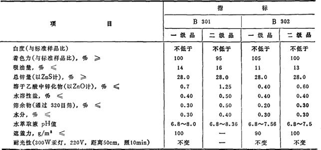 释义 | 锌钡白 别名 立德粉、立索本、白铅粉 分子式 BaSO4·ZnS 分子量331 性能 锌钡白系硫酸钡与硫化锌的混合物,通常硫化锌含量在28~30%左右,其折射率、遮盖力与其比例有关。相对密度4.136~4.39,不溶于水,与碱、硫化氢不反应,但遇酸会分解放出硫化氢气体,可溶性盐会使其变暗。它耐热,但日光久晒会变暗。 质量规格 HG1-1059-77 注:B302较B301具有较好分散性、着色力、白度。它是将B301进行表面处理后的产品。 用途 主要用于室内涂料内,在油墨、橡胶中充当着色剂和填充料双重角色。亦用于橡胶、造纸、皮革等工业中。 包装贮运 内衬塑料薄膜编织袋,每袋50kg、40kg、25kg装。贮藏运输应通风、防潮、防晒,按一般化学物品运输(以下着色剂贮运要求大致相同故从略)。 国内生产厂 上海京华化工厂、浙江温州颜料化工厂、河南栾川县化工厂、广东汕头市立德粉厂、广西全川县化工三厂、广西陆川县化肥厂、辽宁沈阳市胜利化工厂、吉林四平市第二化工厂、吉林扶余县东风化工厂、湖南湘潭市化工厂、湖南长沙坪塘化工厂、湖南衡东县化工厂、湖南衡阳市城北化工厂、广东广州立德粉厂、广东汕头立德粉厂、四川重庆染料厂、广西柳州锌品厂、广西柳州市第一化工厂、广西梧州第一化工厂、山东胶县化工厂、天津东风化工厂、山西太原染料厂、黑龙江哈尔滨颜料厂、河北行唐县立德粉厂、湖北襄樊市青山化工厂、安徽安庆市造漆厂。 |