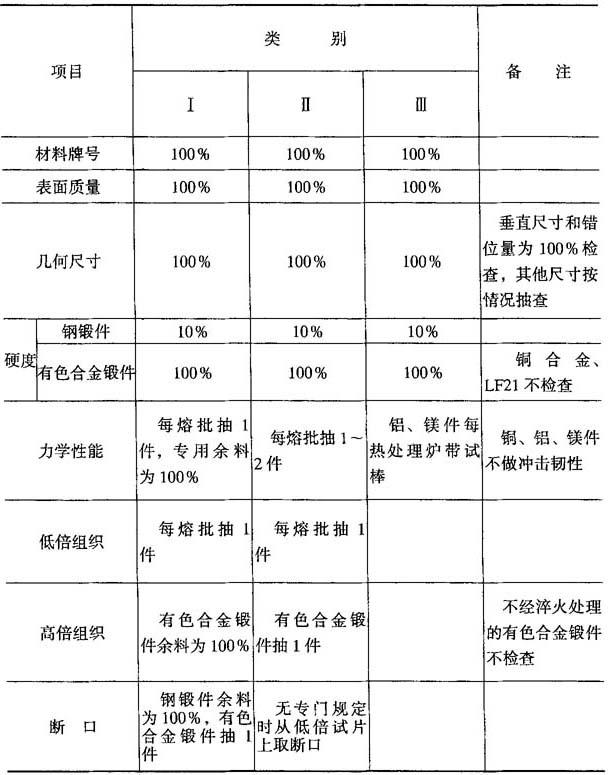释义 | 锻件质量检验的内容与方法 为了保证锻件质量符合锻件的技术标准,满足使用要求,必须对锻件进行质量检验.检验内容主要有以下几项:锻件几何形状和尺寸;表面质量和内部质量;力学性能和化学成分等. 检验项目是根据零件的受力情况、工作条件、材料种类、冶金工艺和重要程度的不同来划分的.各工业部门对锻件分类、检验项目和质量要求不同,有些部门把锻件分为三类,有的分为四类或五类.表8-48是分为三类的检验项目. 表8-48 锻件等级及检验项目 对于不同材料和不同规格锻件其质量检验项目也不同. 对一般钢锻件是在预备热处理状态下取试样,检验力学性能、晶粒和断口.对于其他钢及其合金、铜合金锻件是在最终热处理状态下取样,检验力学性能和低倍缺陷。 对一般钢锻件,仅做常温拉力和冲击试验. 对于高温合金锻件做高温性能试验. 对于重要的耐热不锈钢锻件要做晶间腐蚀检验.对于磁性材料锻件应做导磁、导电性能的检验. 对于不同规格锻件其检验项目也不同.水压机上大型自由锻锻件的检验内容有:力学性能、残余应力和冷弯、化学成分,并通过探伤检查内部缺陷及表面质量. |