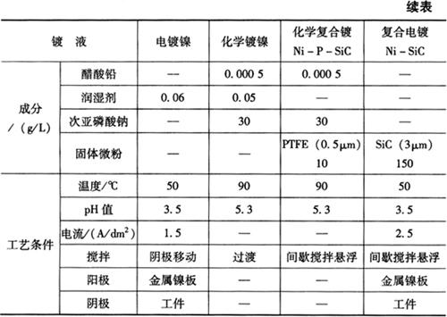 释义 | 镀膜及涂膜处理 (-)镀膜处理 钢的金属镀层可以通过电镀、化学镀和复合镀的方法获得,镀层的目的是提高钢件表面的各种物化性能,改善外观,赋予表面耐蚀、耐磨、装饰性及其他特性。 常用的金属镀层有铜、锌、镍、铬等单金属镀层,锌-镍合金、锌-镍-铁合金等合金镀层,Ni-SiC、Ni-PTFE等复合镀层,以及铜-锌仿金镀、黑铬等防护装饰层和特殊性能层。表7-45以镀镍为例,说明了电镀、化学镀和复合镀的工艺异同点;电刷镀的镀镍工艺如表7-46所示。 表7-45 四种镀镍配方及工艺 表7-46 部分刷镀配方及工艺 (二)涂膜处理 钢的涂膜分为涂金属层和涂非金属层,涂金属层的方法有热浸镀、热喷涂和堆焊。热浸镀简称热镀,就是将钢件浸入熔点较低的液态金属中,使钢件基体与熔融金属生成和合金层,并在合金层表面再吸附一层熔融金属,待取出后冷凝成镀层。常用的有热镀锌、铝、锡、铅及其合金。 热喷涂是用电弧、离子弧或燃烧火焰高温将金属粉末、金属丝、陶瓷、石墨等熔融,堆敷在钢件基体表面或利用气流使之高速雾化,并使雾化的金属熔滴喷向钢件基体,冷凝后形成结合层。此涂层具有耐磨、耐蚀、抗氧化、减摩等性能(表7-47),广泛应用于提高机械零部件的力学性能和使用寿命以及修复废旧零部件。 表7-47 热喷涂材料及应用效果 钢的非金属涂层主要是各种高分子涂料。涂料的施工称为涂装,分手工涂刷、喷漆和自动静电喷涂、电泳涂装及粉末涂装。涂层的用途及涂层材料如表7-48所示。 表7-48 非金属涂料及涂层用途 |