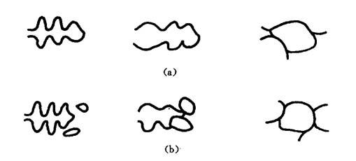 (2)产生非枝晶球状组织 这是喷射沉积材料最显着的组织特征.关于其球化机制,目前较一致的看法是:在雾化过程中,熔滴经历了一个短暂的快速凝固时期,使显微组织极度细化.而沉积过程中的冷却速度比雾化过程的低得多,约在100~102K/s之间,并受沉积基板的传热系数及热性质的控制.如此低的冷却速度将使沉积材料处于一种高温退火状态.在此过程中,球形颗粒的形成主要是两种机制:①沉积过程中未强烈变形枝晶的均匀化,见图9-37(a);②已变形或断裂枝晶臂的生长与粗化,见图9-37(b).其中前一种机制较完善.