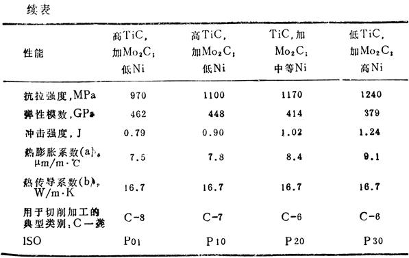 释义 | 镍结碳化钛硬质合金 已经研制了用镍作粘结剂的碳化钛(并加入碳化钼)硬质合金。此种材料具有高的抗月牙洼磨损能力,低的摩擦系数和低的导热性。虽然它的穿透硬度是高的,但其抗磨耗性低于相同或更低硬度的钴结碳化钨硬质合金。 典型的品种含8~25%Ni,8~15%Mo2C及60~80%TiC。有时加入少量碳化钨、钴、氮化钛及其他添加材料。 切削用的四种碳化钛硬质合金的性能和分类法如表23所示。典型的组织如图19所示。 表23 镍结碳化钛硬质合金的性能和用途 注:(a)从21~650℃。 (b)从100~300℃。 图19 典型的镍结碳化钛硬质合金的显微组织有关镍结碳化钛硬质合金的更详细资料见参考文献6。 |