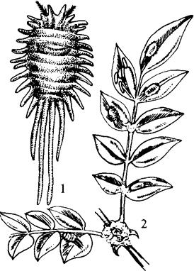 释义 | 长尾粉蚧 【学名】 Pseudococcus adonidum L.。 【分布与为害】 在福建、云南、贵州等地均有分布。寄主有报春花、扶桑、海桐、樱花、变叶木、夹竹桃、仙人掌、杜鹃、石楠等。成虫、若虫刺吸茎叶汁液,影响生长。 【形态特征】 雌虫椭圆形,体长2.5毫米,宽1.5毫米,白色稍带黄色,背中央具1褐色带。足与触角有少许褐色,背面敷白蜡粉。体缘生白色蜡质突出物,近尾端有4根白色细长蜡丝。触角8节,第八节最长,各节均具毛。足甚长,胫节比跗节长2倍,爪长。腹部各节有许多小孔及散生毛,腹侧具圆孔及尖刻,分泌白色蜡质。肛门轮生6根长毛(图6-43)。卵略呈椭圆形,淡黄色,产于白絮状卵囊内。若虫似成虫,但较扁平,触角6节。 图6-43 长尾粉蚧 1.雌成虫 2.为害状 【生活习性】 1年发生2~3代。以卵囊越冬。次年5月中、下旬若虫大量孵化,群集幼芽、茎叶上吸汁为害,使枝叶萎缩、畸形。雄若虫后期成白色茧,在茧内化蛹。雌成虫产卵前先形成絮状蜡质卵囊,卵产于囊中。每雌虫可产卵200~300粒。 【防治方法】 人工刮除介壳虫。若虫盛孵期喷洒螟松1000倍液,或氧化乐果1000倍,或40%速扑杀乳油1500倍液。 该花除上述病虫外,还有炭疽病、根腐病、桃蚜、朱砂叶螨,可参阅其他花卉。 |