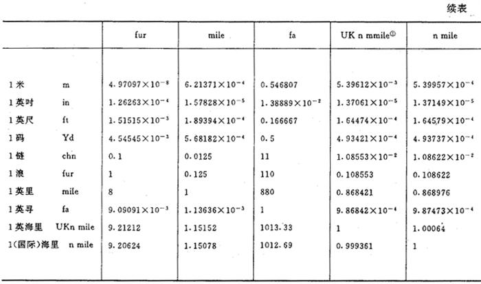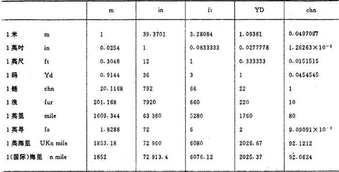 长度单位换算系数表