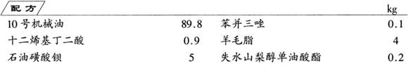 释义 | 长效防锈油 制法 (1)在容器中加入一定量的10号机械油,升温至60~80℃,加入石油磺酸钡、苯并三唑,搅拌升温到120℃,使各物料充分混匀。然后按配比补足10号机械油,于120℃左右继续搅拌,直至机械油充分脱水。 (2)在不断搅拌下,降温至80℃后,加入十二烯基丁二酸、羊毛脂。降温到60℃后加入失水山梨醇单油酸酯,不断搅拌,使全部物料混匀。 (3)在不断搅拌下,降温至40~50℃,滤去杂质后,即得防锈油。 使用时将金属制品除油、除污并干燥,然后用本品涂刷或浸渍。 |